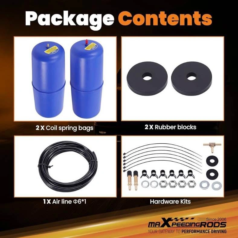 Brand new with all accessories. Retails for $154 (including tax). maXpeedingrods 2300 lbs Rear Air Helper Spring Kit for Ram 1500 Standard Rebel 2019-2025 Coil Spring Air Suspension Bags Kit 【Fitment】 Air Suspension Bags Kit fits for Ram 1500 Standard Rebel 2019-2025. Does not fit 2019 Classic model or TRX. 【Feature】 Made of durable and elastic polyurethane with high load-bearing capacity and long life span, easily control air pressure in the air springs for varying loads and conditions 【Practical Installation】 Designed to easily install inside your vehicle's existing coil springs and provide a more level ride. 【Adjustable】With up to 2,300 lbs load capacity, these air helper springs are adjustable from 5-50 PSI and help stabilize your ride, improving and eliminating trailer sway, vehicle squat, and bottoming out