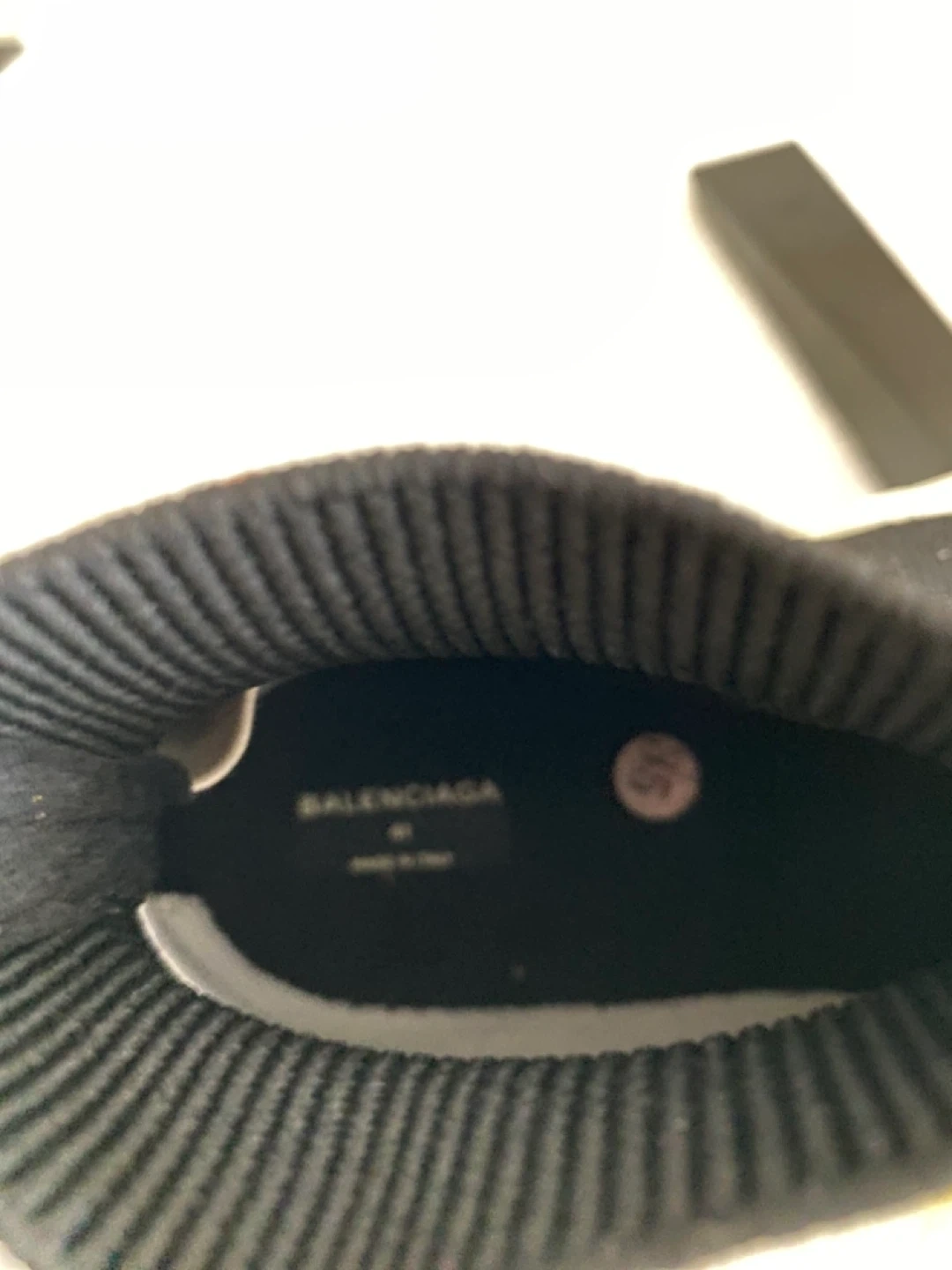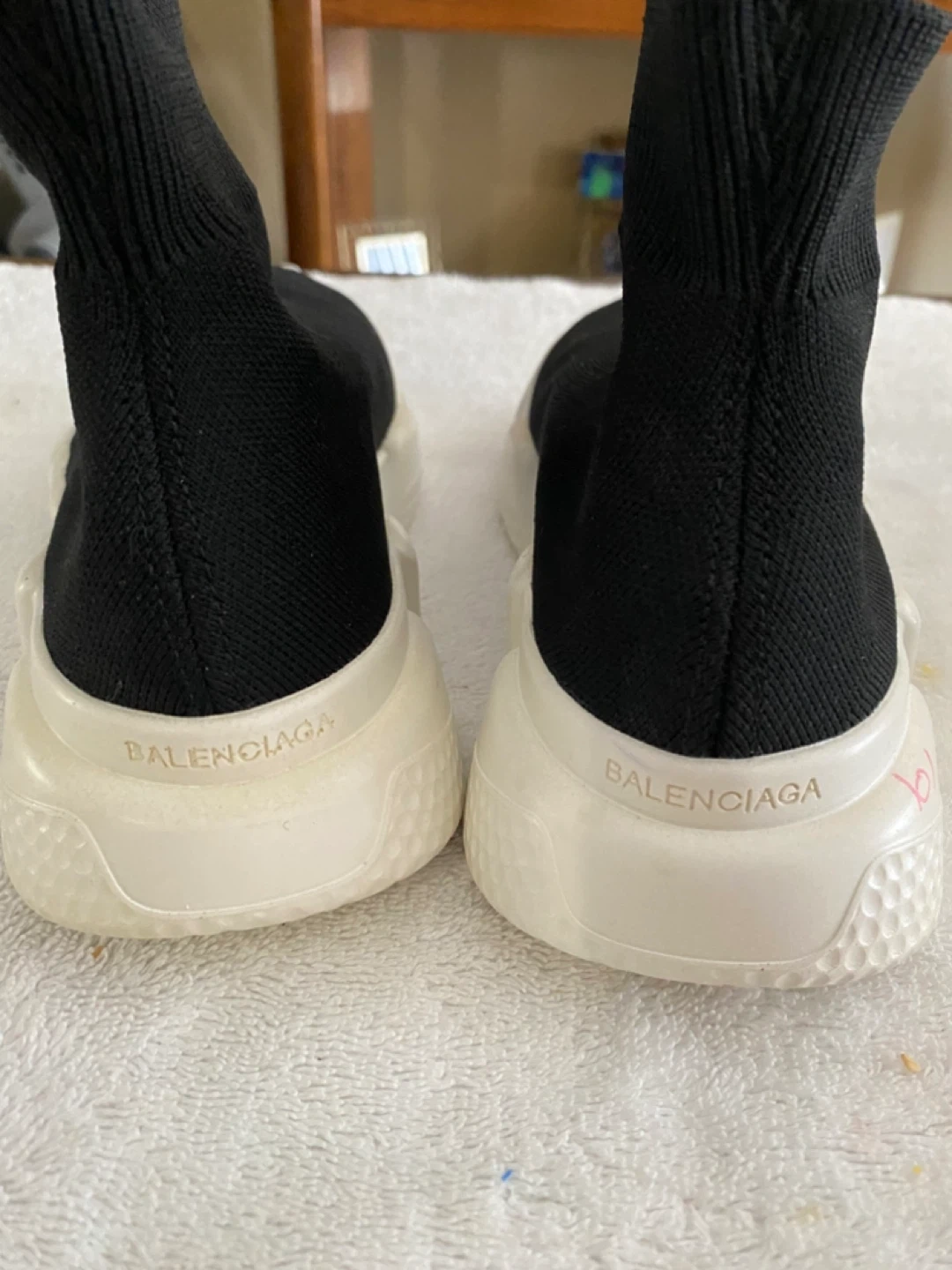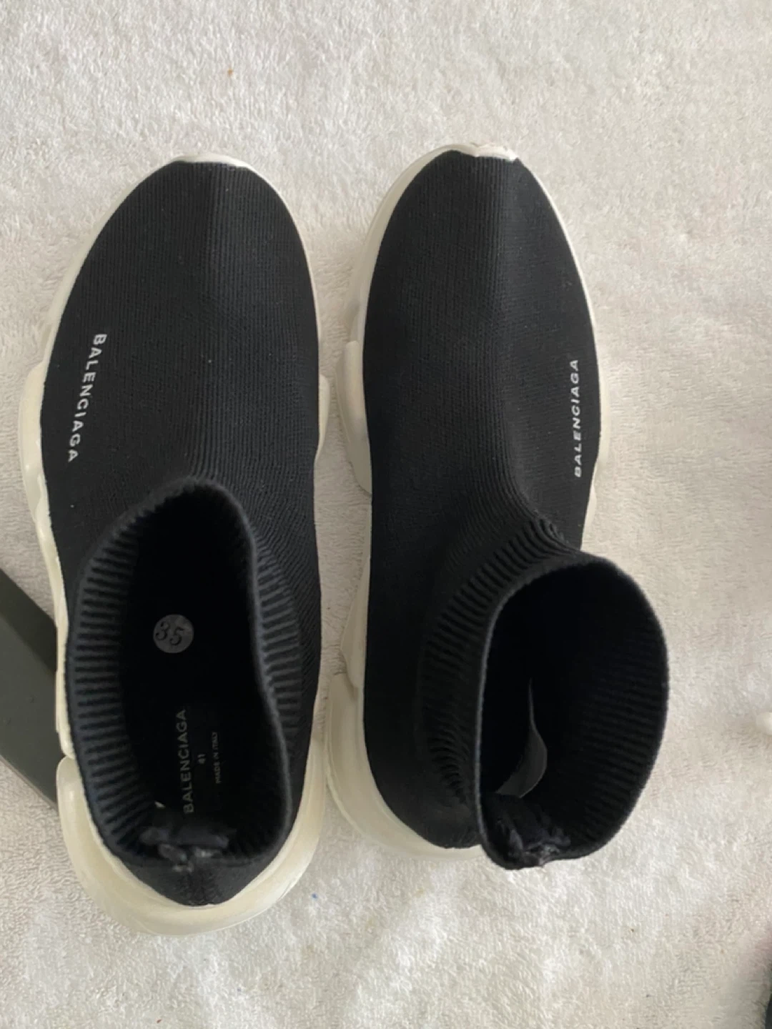 New never worn, a pair of Balenciaga Speed 2.0 sneakers. These are a size 35, which is equivalent to a US size 5..5. They are black with a white sole. Retails for $1,227.00
