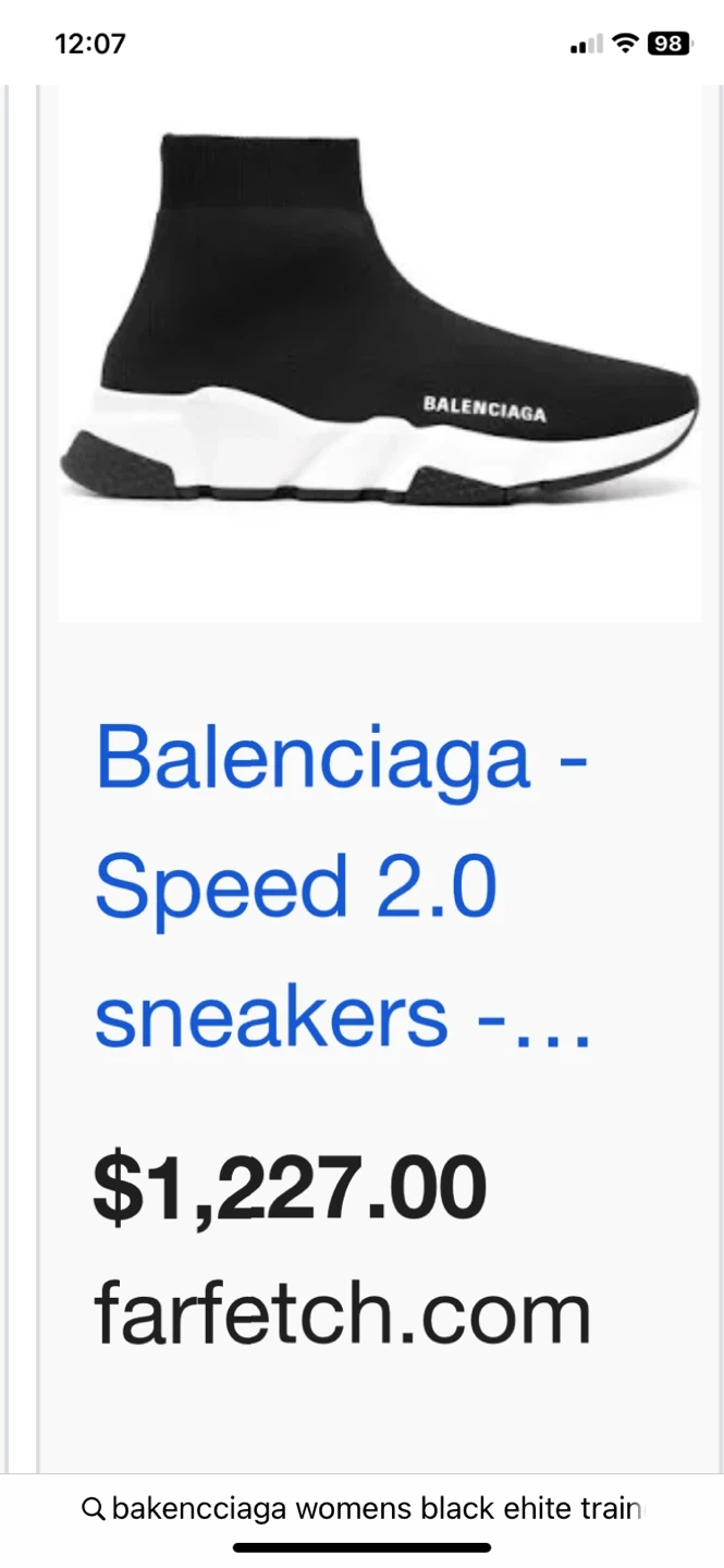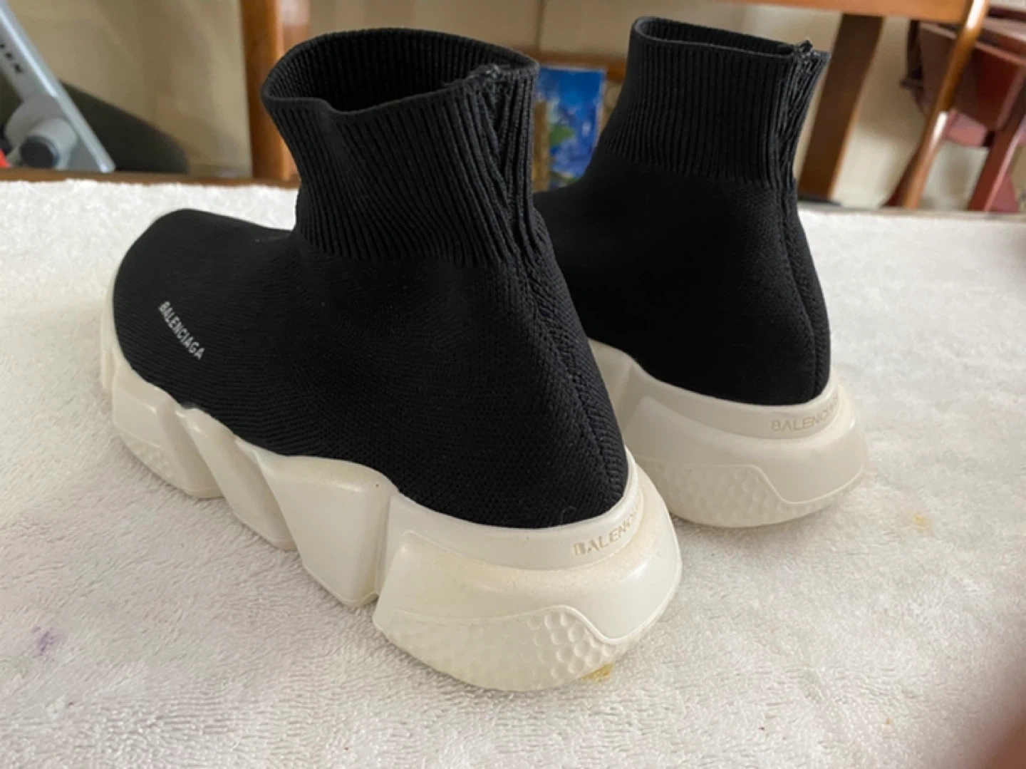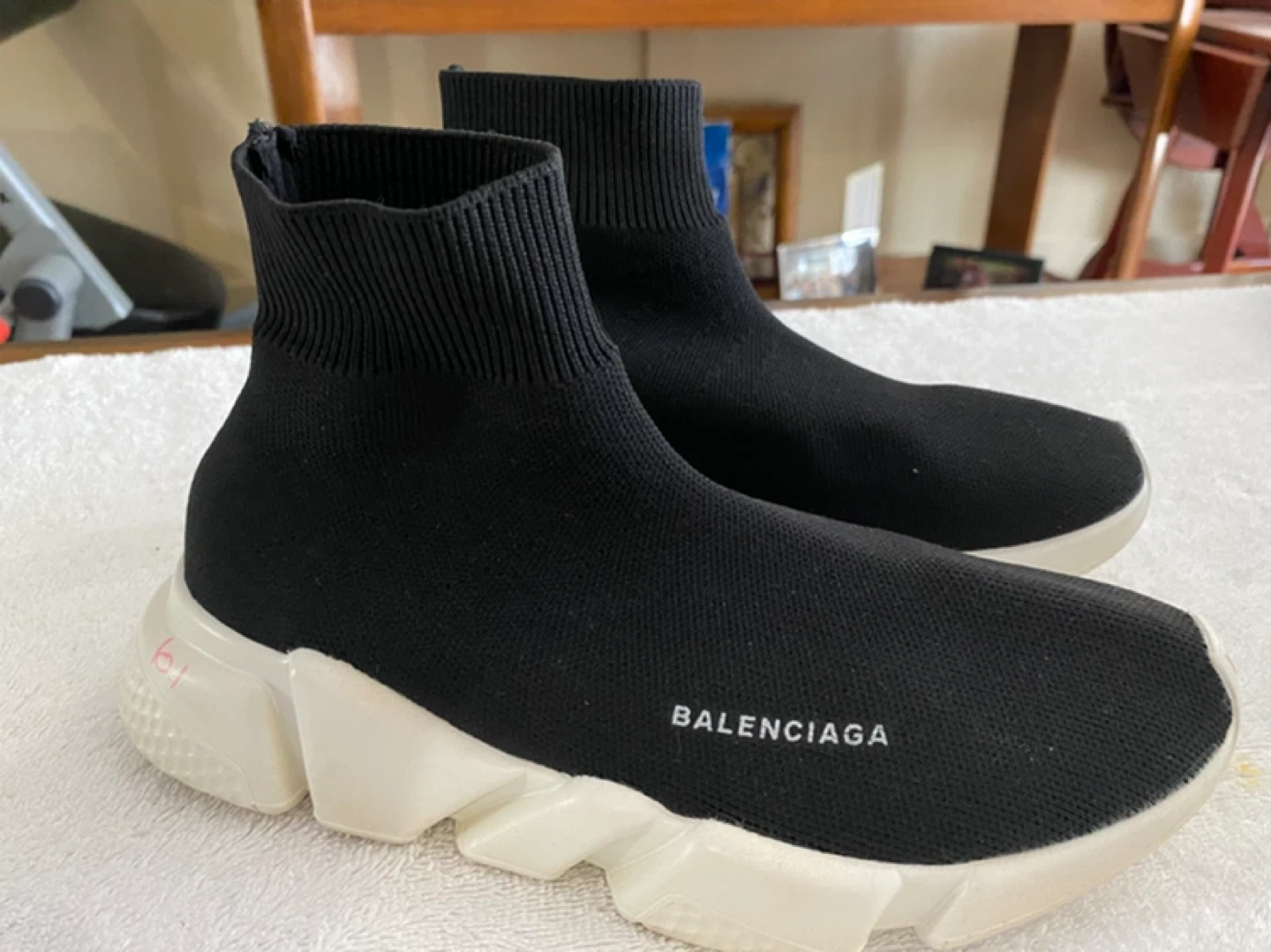 New never worn, a pair of Balenciaga Speed 2.0 sneakers. These are a size 35, which is equivalent to a US size 5..5. They are black with a white sole. Retails for $1,227.00