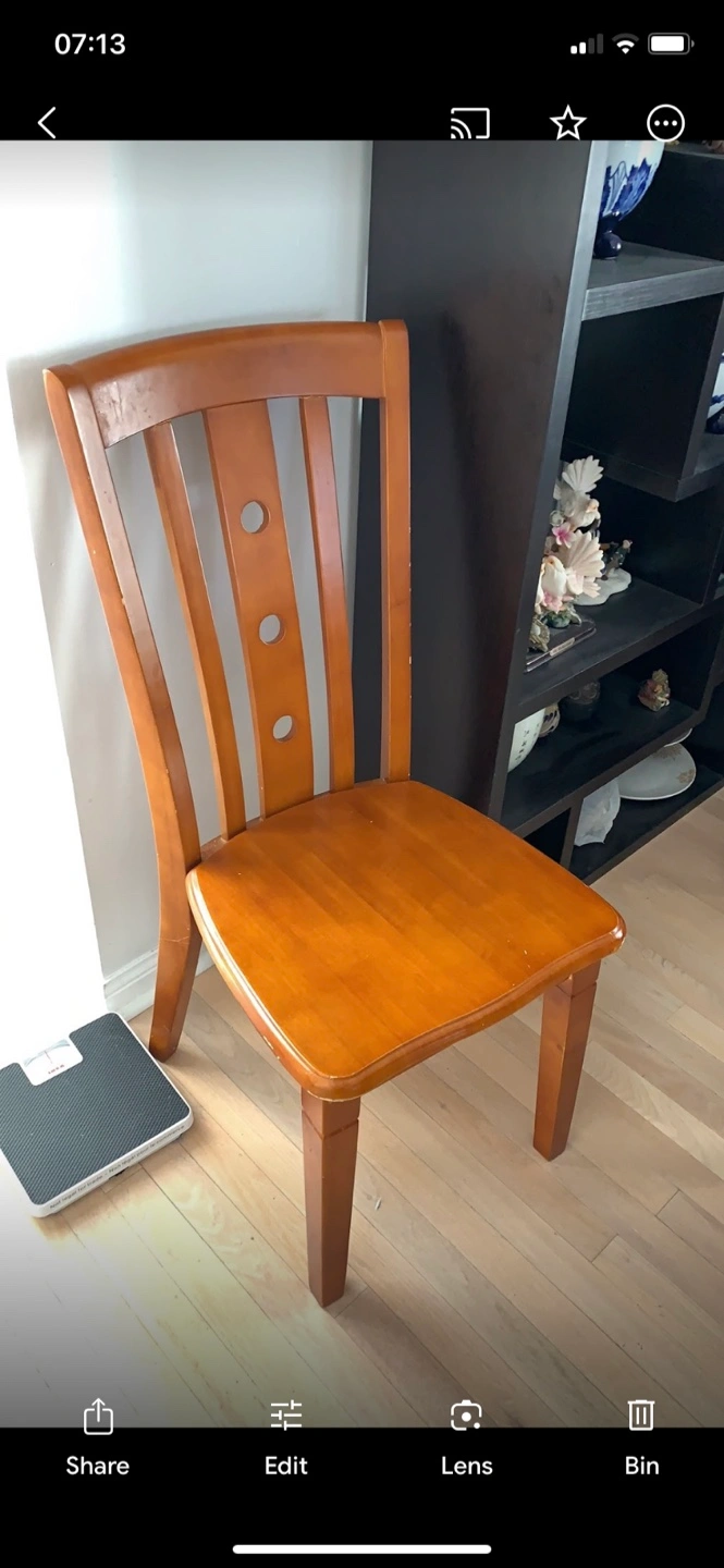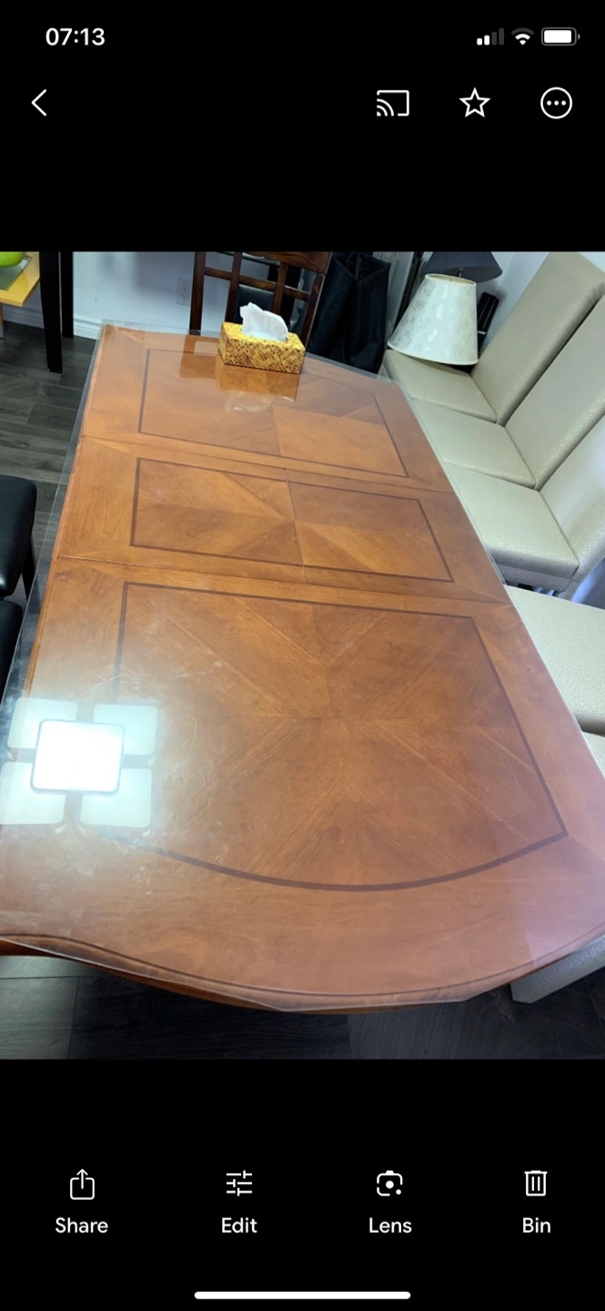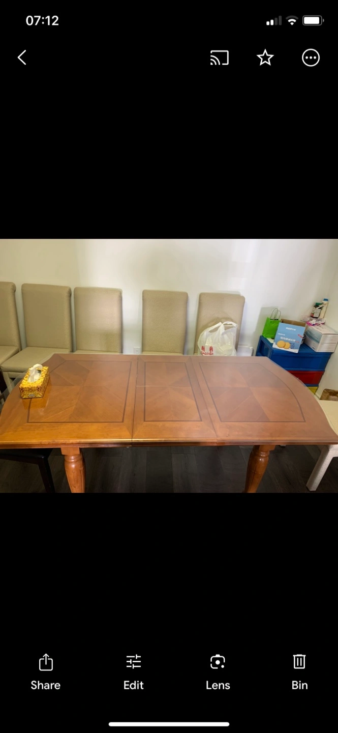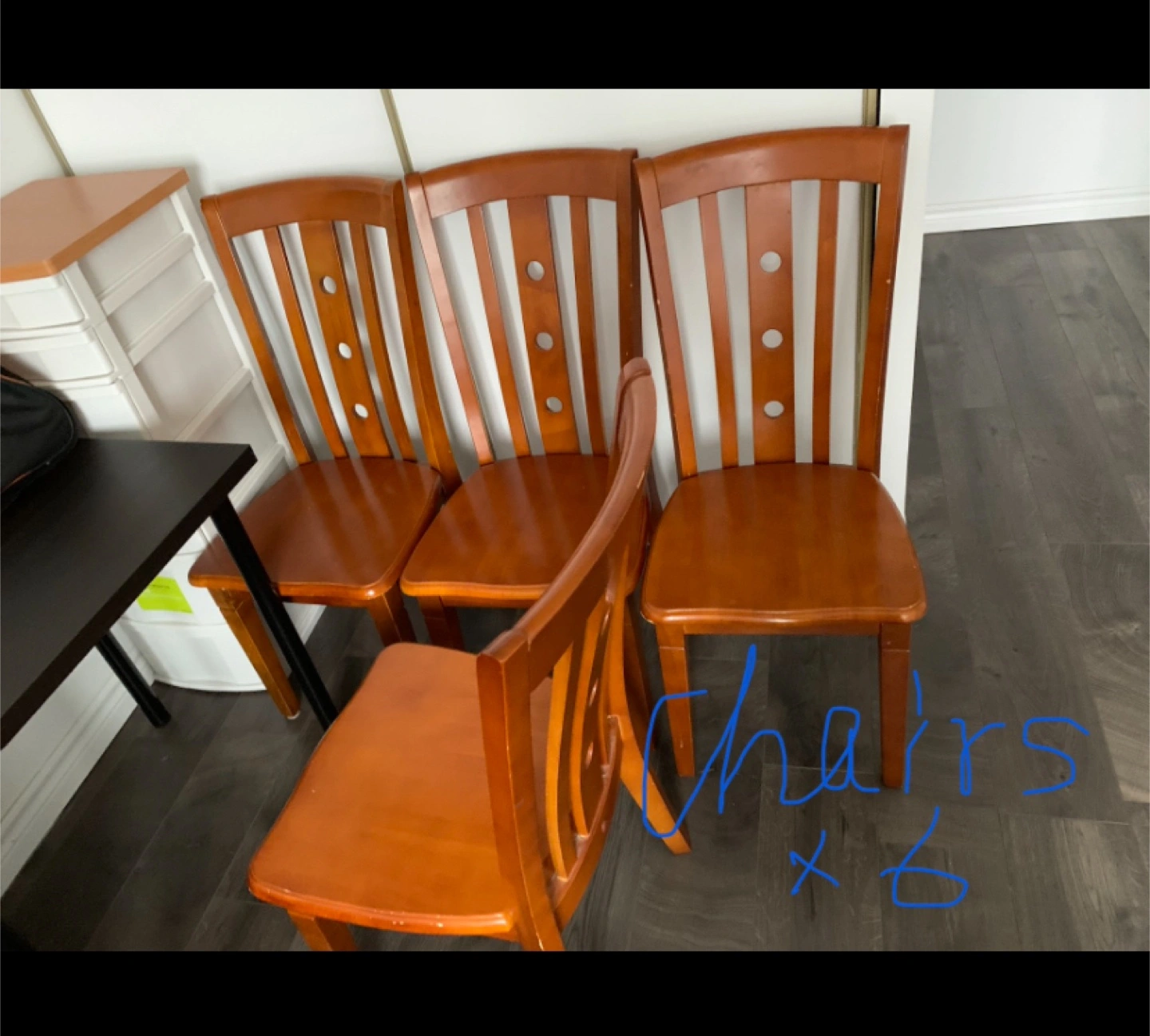 Selling a lovely wooden dining table with matching chairs. It's in good condition and would be a great addition to any dining room. The table has a beautiful design and the chairs are sturdy and comfortable. Perfect for family dinners or entertaining guests!