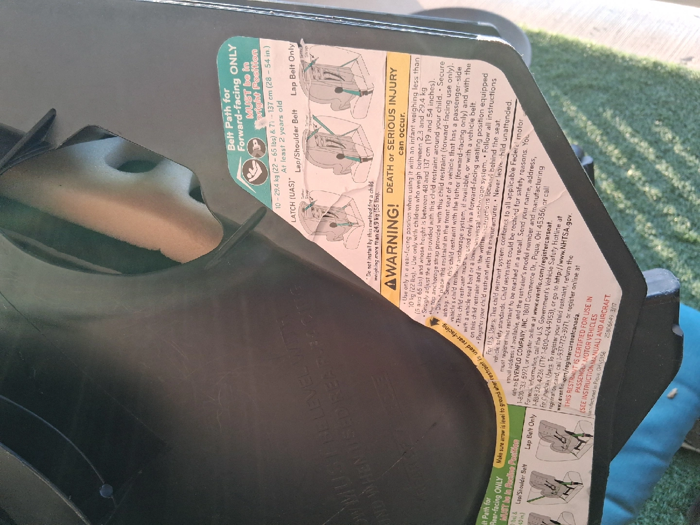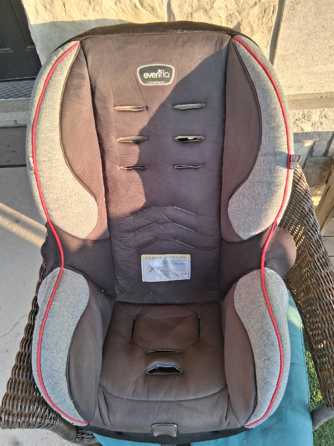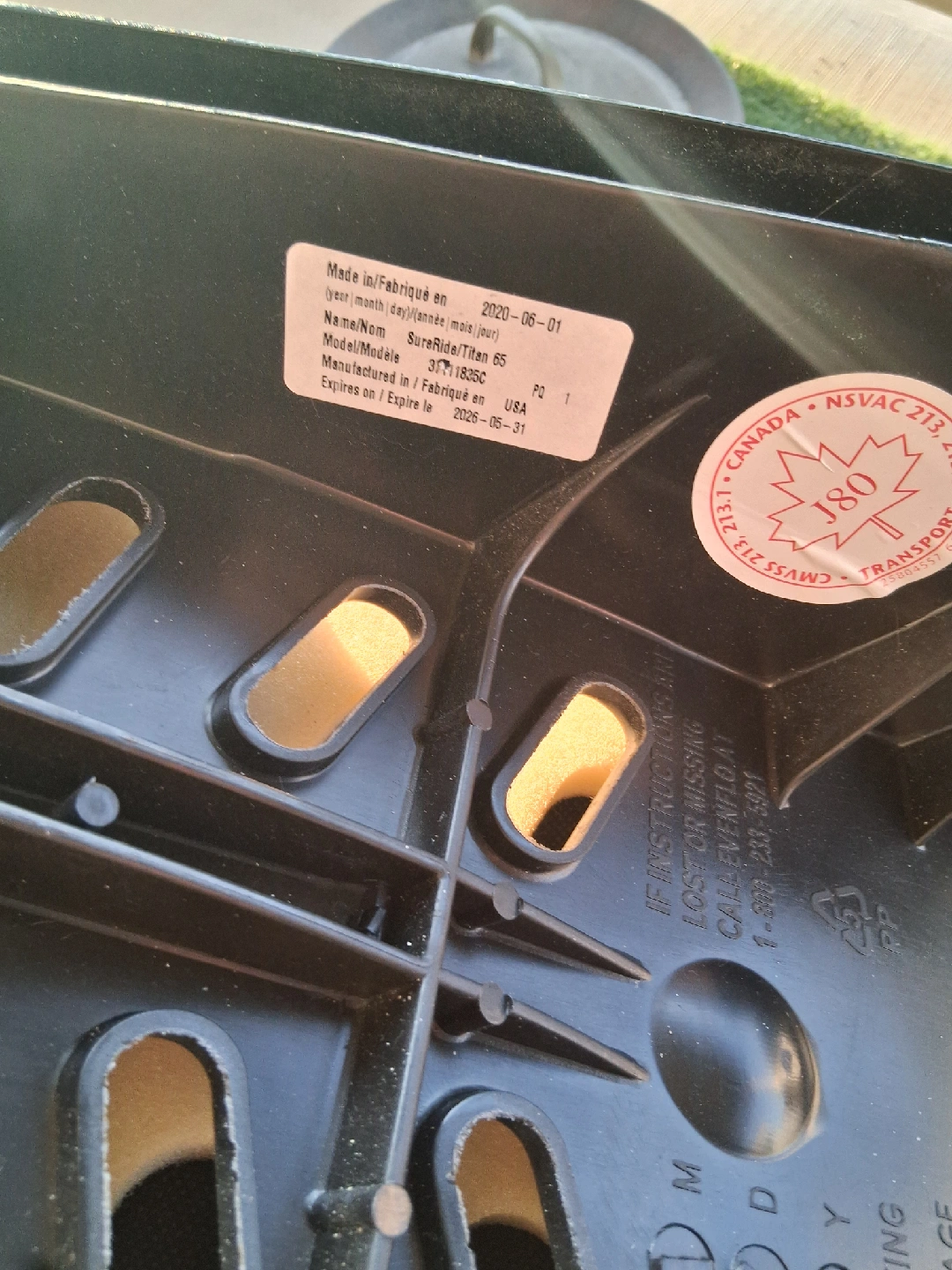 Selling an Evenflo SureRide/Titan 65 car seat. It's in good used condition and ready for a new family. The manufacturing date is 2020 June 01, and the expiry date is 2026 May 31.((missing a clip)