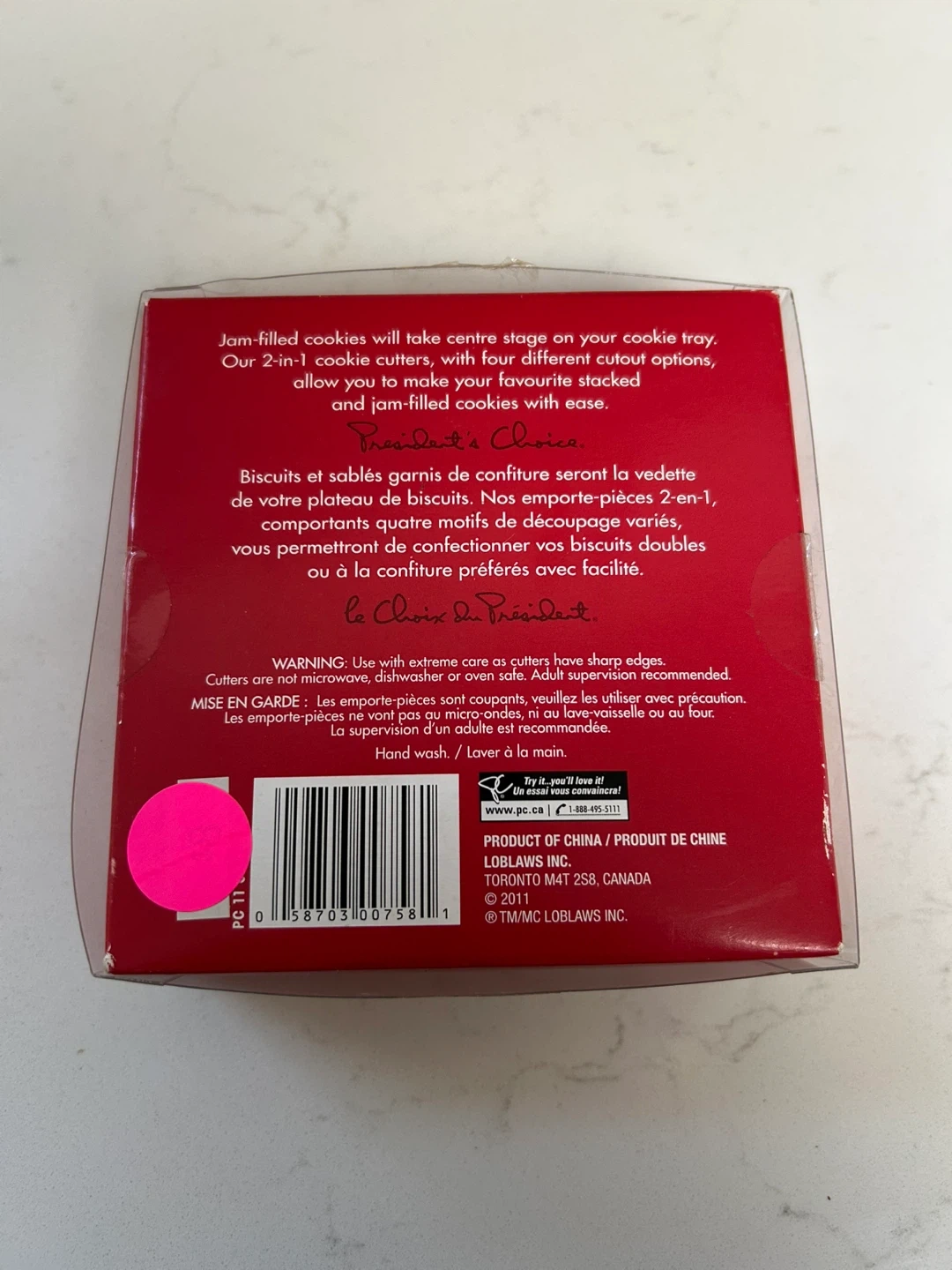 Make jam-filled cookies with ease using this President's Choice 2-in-1 cookie cutter set! The set includes four different cutout options for stacked and jam-filled cookies. Perfect for baking some delicious treats!