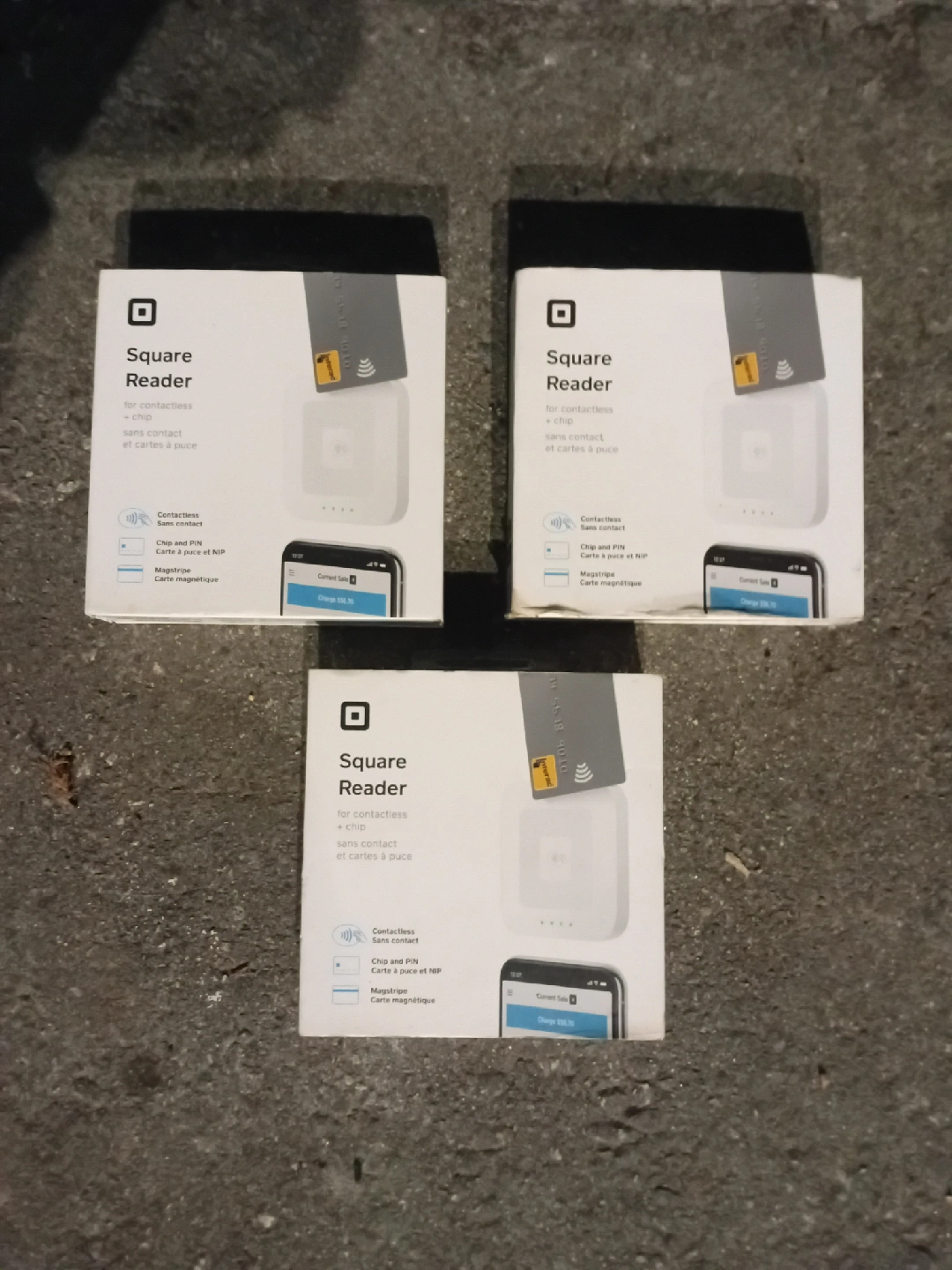 Selling three (BNIB) Square Reader for contactless, chip, & swipe payments. It's in great condition and ready to use for your business or personal needs. Perfect for accepting payments easily and securely! Even for accepting a payment from selling something on karrot ๐