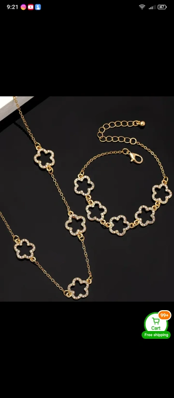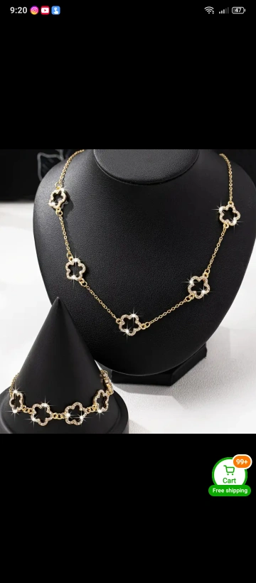 Selling a beautiful gold-tone necklace and bracelet set featuring a clover design with sparkling accents! This set is perfect for adding a touch of elegance to any outfit. The clover design is so cute and stylish we have in our list of jewelry and this especially for you queens we have 5 set's each for 20$ retail 18$