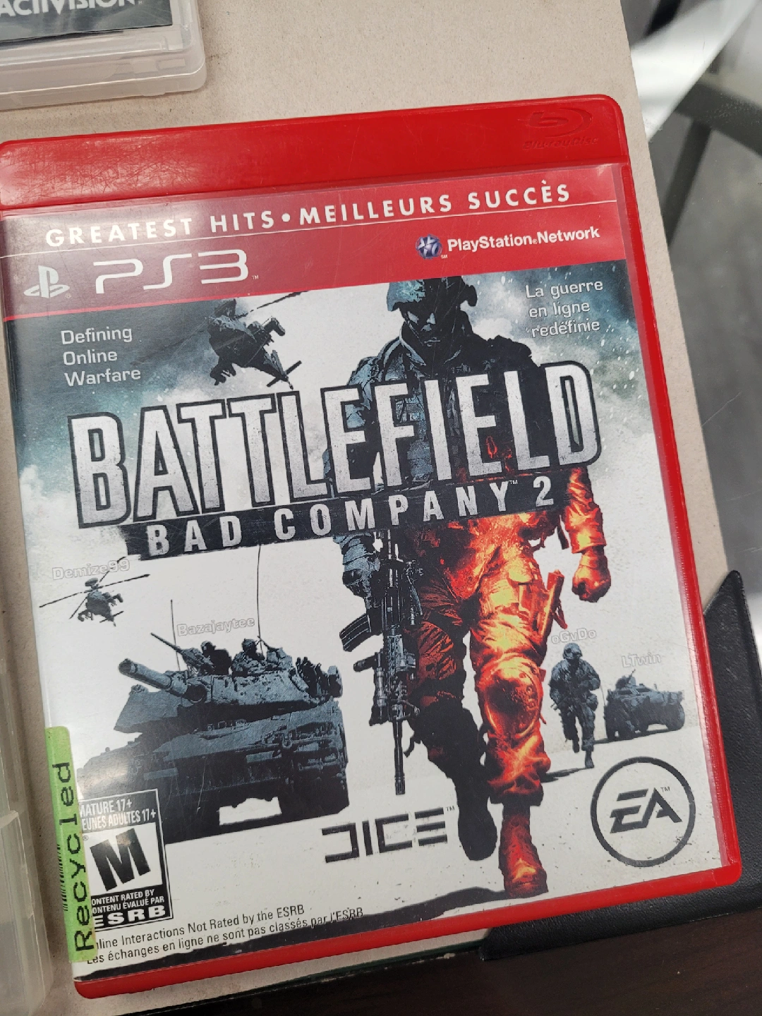 Selling a used copy of Battlefield: Bad Company 2 for the PlayStation 3 (PS3). It's a Greatest Hits edition and is rated M for Mature. Enjoy defining online warfare!