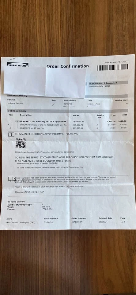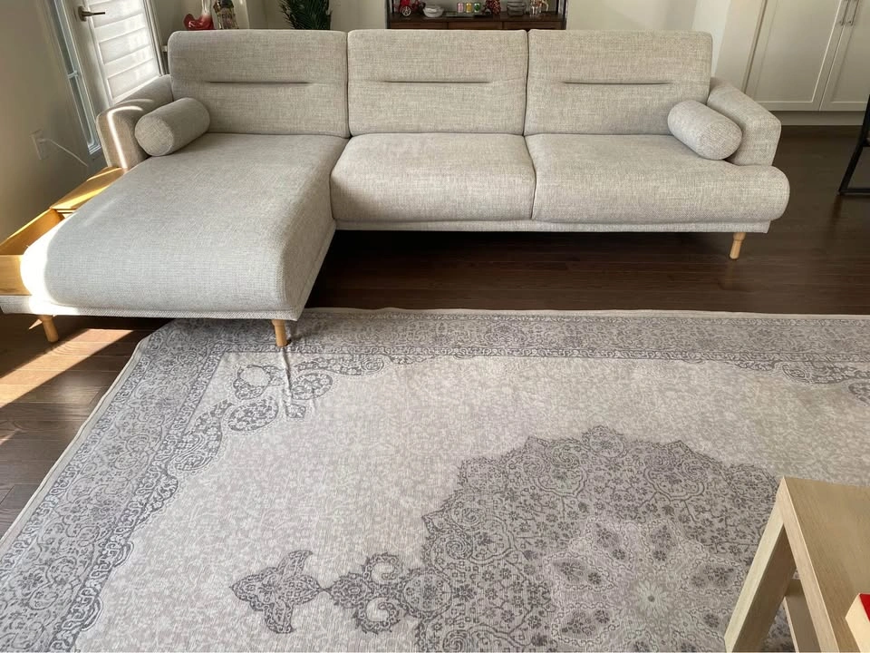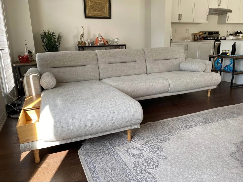 Selling an exceptionally comfortable and stylish IKEA LANGARYD sectional sofa with left-facing chaise in LEJDE light gray fabric. Purchased in June 2024 and gently used in a pet-free, smoke-free home. - **Configuration**: 3-seater sofa with left chaise lounge (model: LANGARYD SO3 w chs lnf lft LEJDE lgry/wd NA) - **Fabric**: Soft, durable LEJDE light gray, easy to clean and pairs well with any décor - **Legs**: 4 sturdy oak legs (LANGARYD leg 15 oak 2pk), modern and airy design - **Condition**: Like new, no stains, tears, or sagging. All cushions retain their shape and support. - **Original Price**: Over $2,400 CAD (receipt available for verification) Perfect for living rooms, family spaces, or home offices. Generously sized for lounging, reading, entertaining, or movie nights. **Bonus**: Fastidious care taken—still includes all original hardware. Pickup in Milton 21st to 25th. Please message for more details or to arrange a viewing.