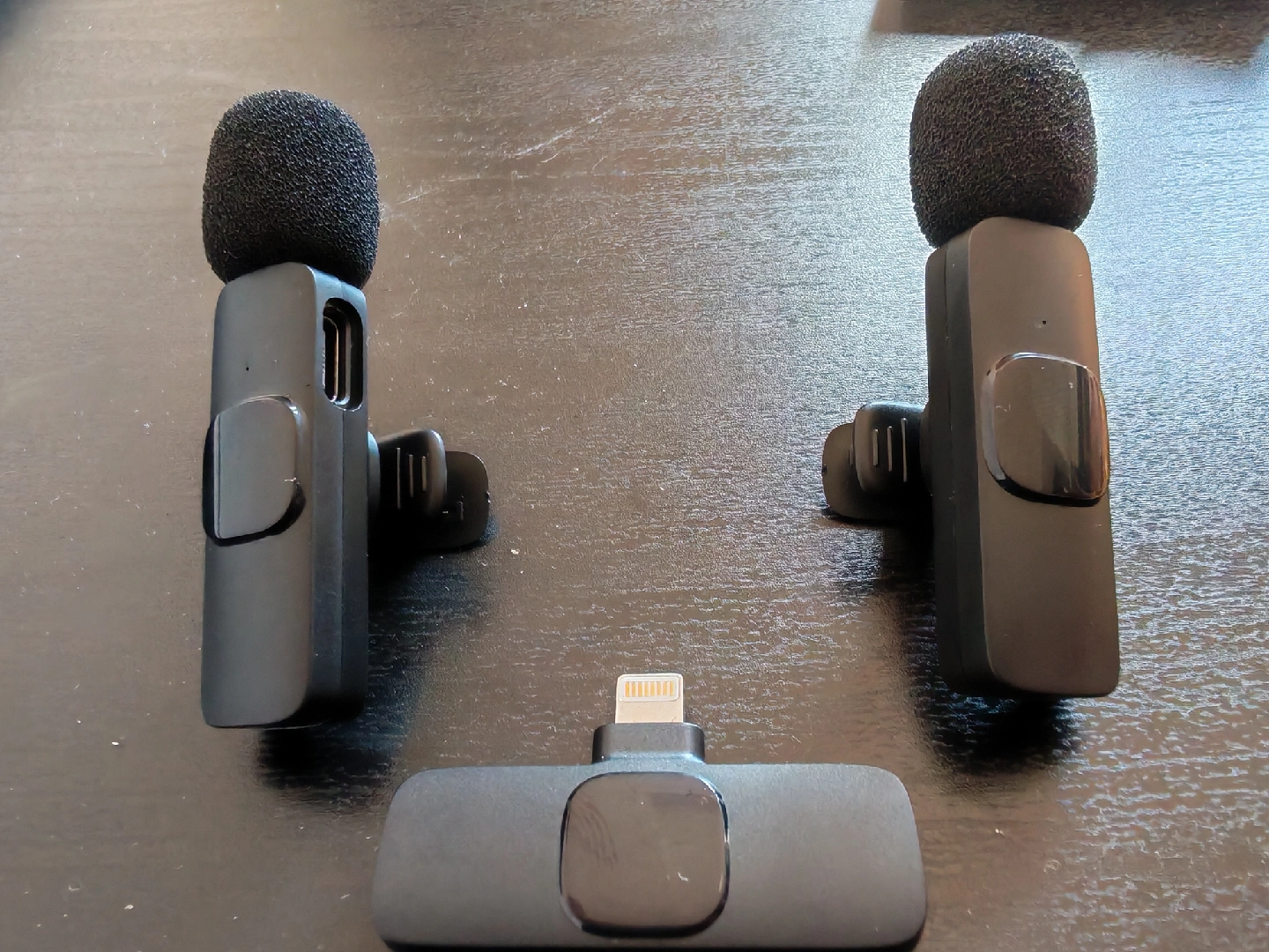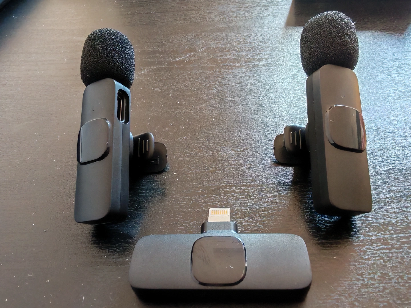 Selling a wireless lavalier microphone for iPhones and iPads. This is a clip-on microphone, perfect for recording clear audio on the go. It comes with a receiver that plugs directly into the Lightning port, making it easy to use. Great for interviews, vlogging, and more!