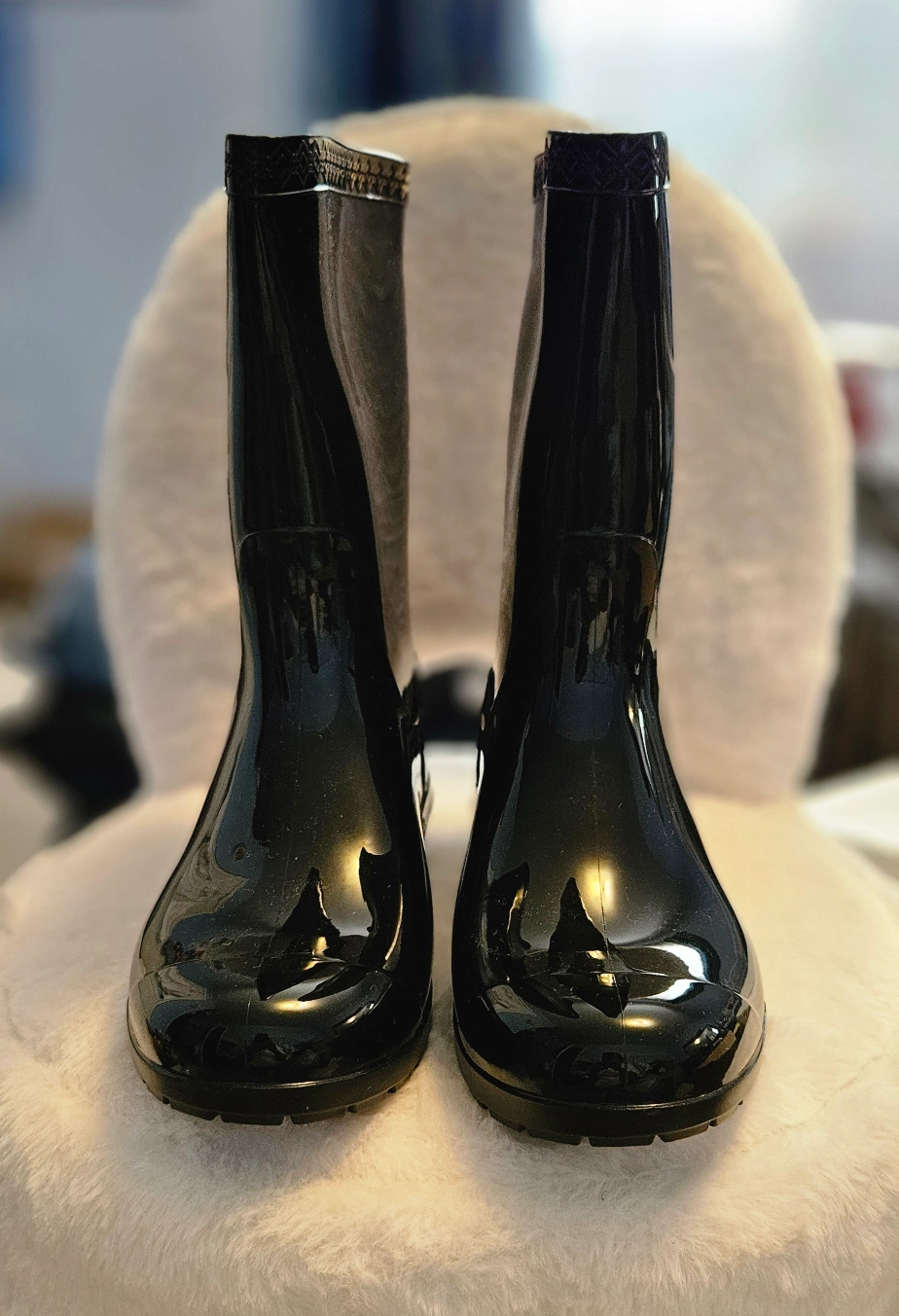 Selling a pair of UGG rain boots in black, size 2 US. This is Brand New and ready for some rainy day adventures! New with Box!