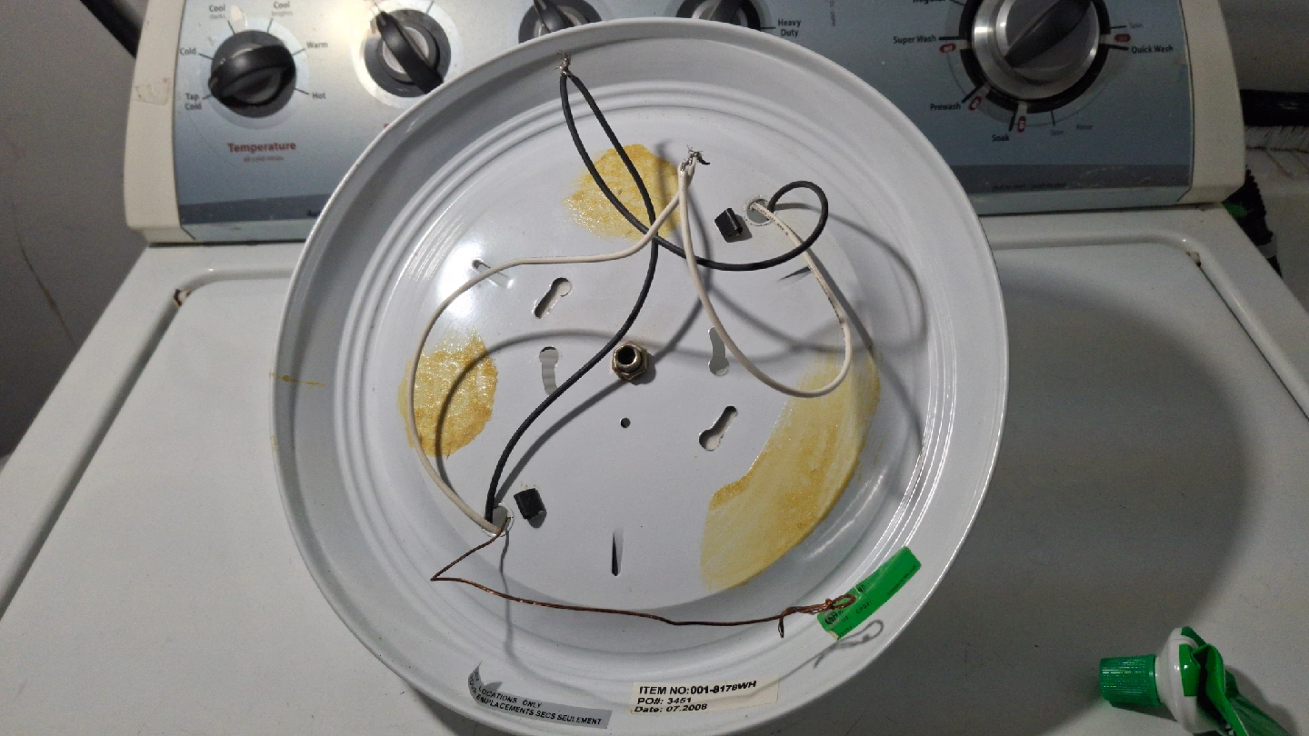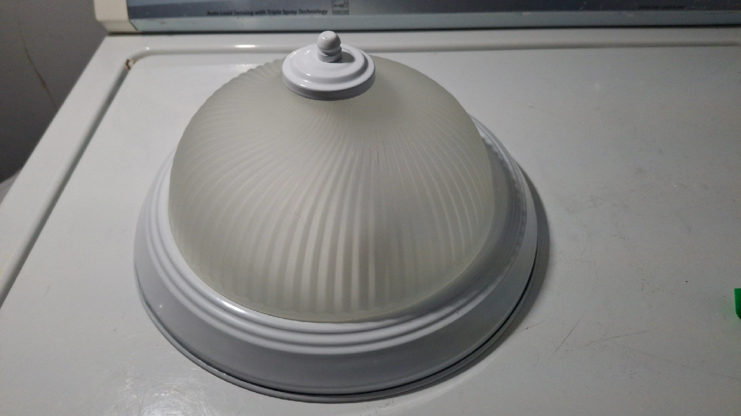 Selling a used ceiling light fixture. It features a white base and a frosted glass dome. The fixture appears to be in good condition, ready to brighten up your space