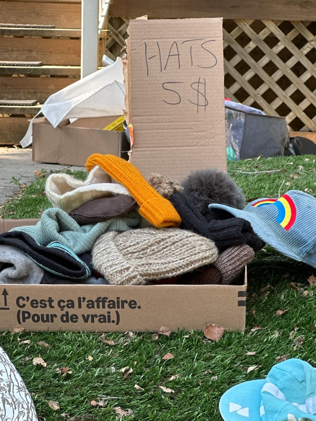 I have a box of assorted hats for sale. They're $5 each