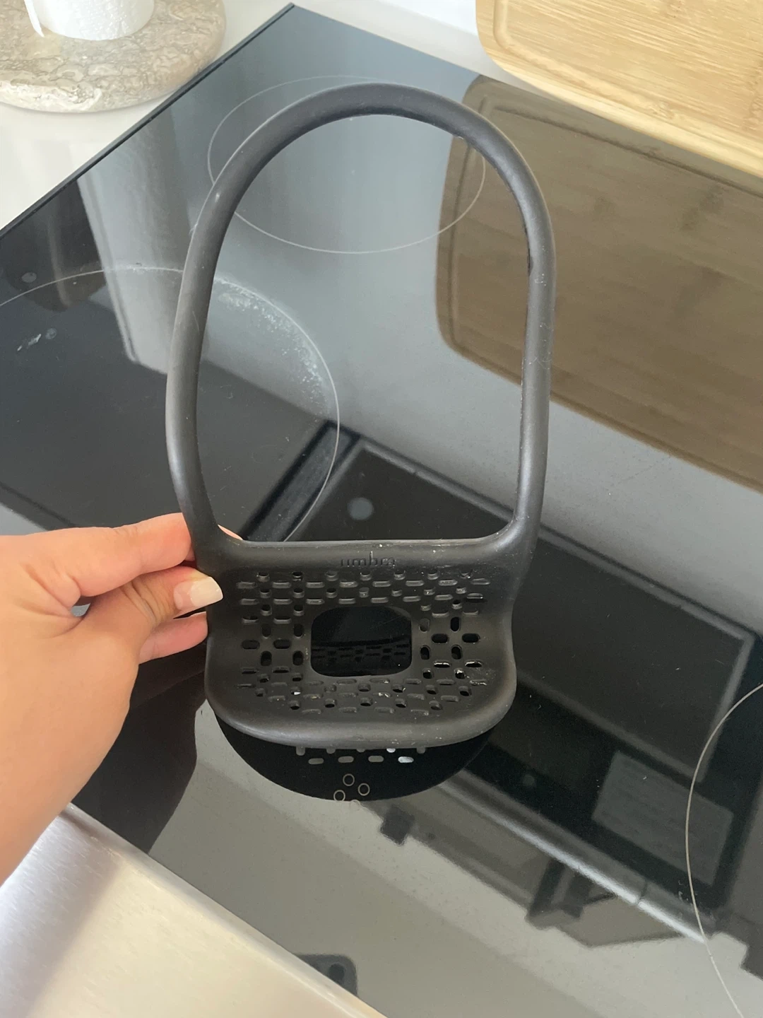 Keep your sink sparkling with this Umbra sink squeegee! It's a handy tool to quickly wipe down your sink after use, preventing water spots and buildup. Easy to grip and store, it's a great addition to any kitchen