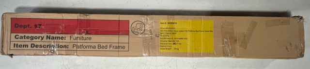 I'm selling a brand new Zinus contemporary platform bed frame designed for queen-sized mattresses, offering sturdy support with a modern aesthetic. This frame is still in its original, unopened packaging, ensuring it's in pristine condition and ready for easy assembly. Specifications: * Size: Queen * Type: Platform Bed Frame * Brand: Zinus * Condition: New in Box Looking to create a serene and stylish bedroom without breaking the bank? This Zinus platform bed frame might just be your ticket to dreamy nights. And just so we're clear, if this ad is still up, the bed frame is still available, so no need to ask! Happy sleeping! Based on similar Kijiji listings, a queen platform bed frame typically sells between $150 and $300, depending on the brand and condition. Selling for $200.