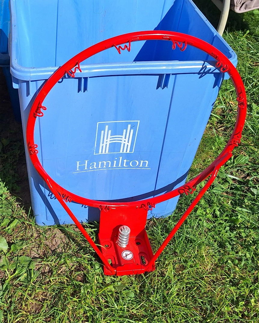 Selling a red metal basketball rim. It's in perfect condition and ready for shooting hoops. Proceeds to cat rescue, Kit Cat Club Of Hamilton Upper Wentworth and Concession area Hamilton mountain