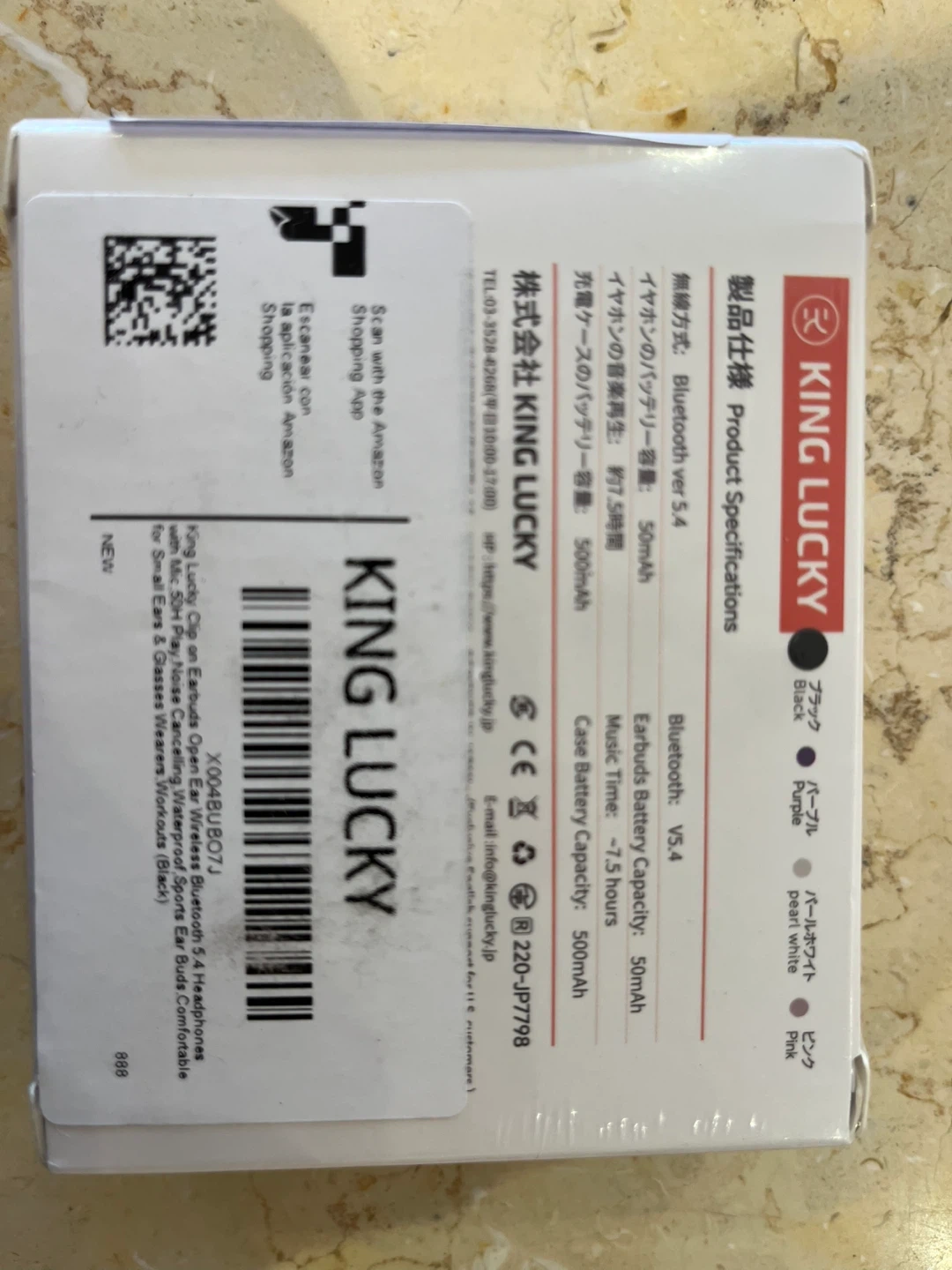 Selling a brand new pair of King Lucky Clip On Bluetooth Earbuds in black! They are still in the box and have never been used. These earbuds are designed to clip on for a secure and comfortable fit, perfect for sports and other activities. Music time is about 7.5 hours. Case battery capacity: 500mAh