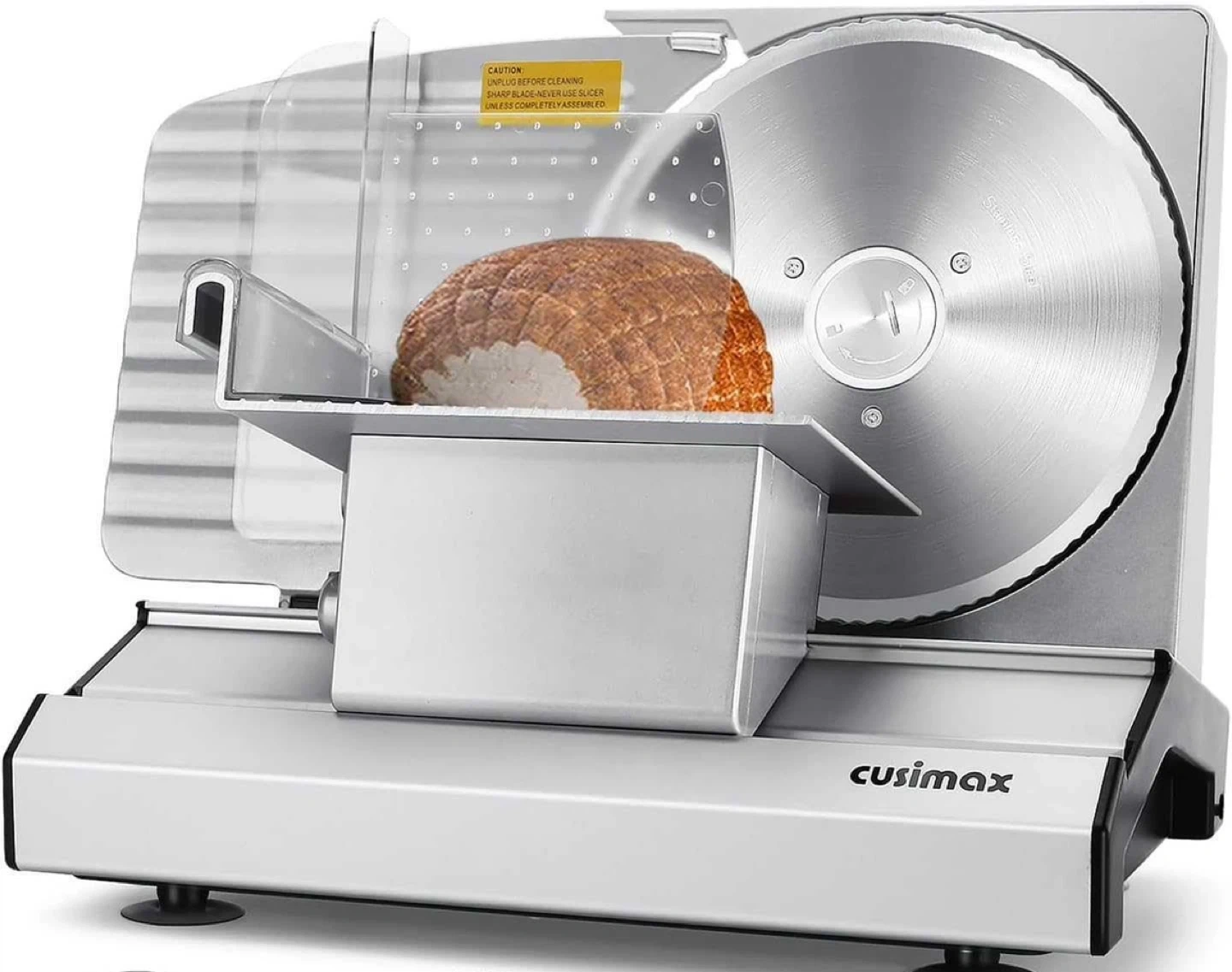Selling a brand new Cusimax CMFS-2201 food slicer! It's still in its original packaging, never been used. Perfect for slicing meats, cheeses, and more. Get precise cuts every time with this handy kitchen appliance!