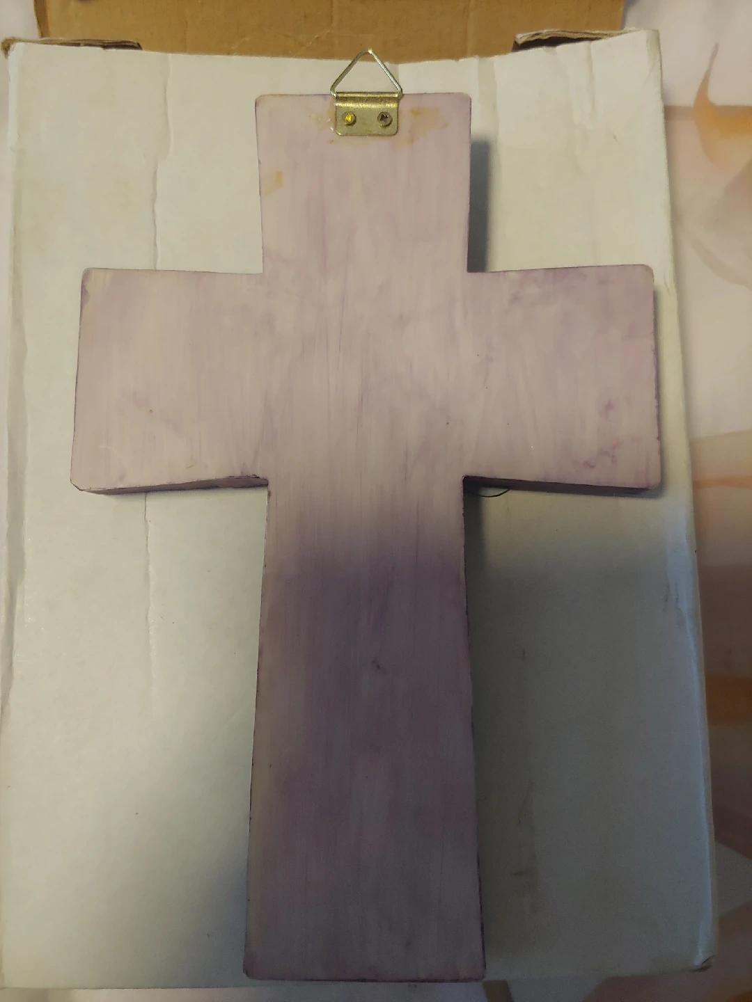 A lovely decorative cross featuring a butterfly and floral design. It measures approximately 9 inches by 6 inches. It is a bit heavy, so keep that in mind if planning to hang on wall. Comes in the box as shown. New
