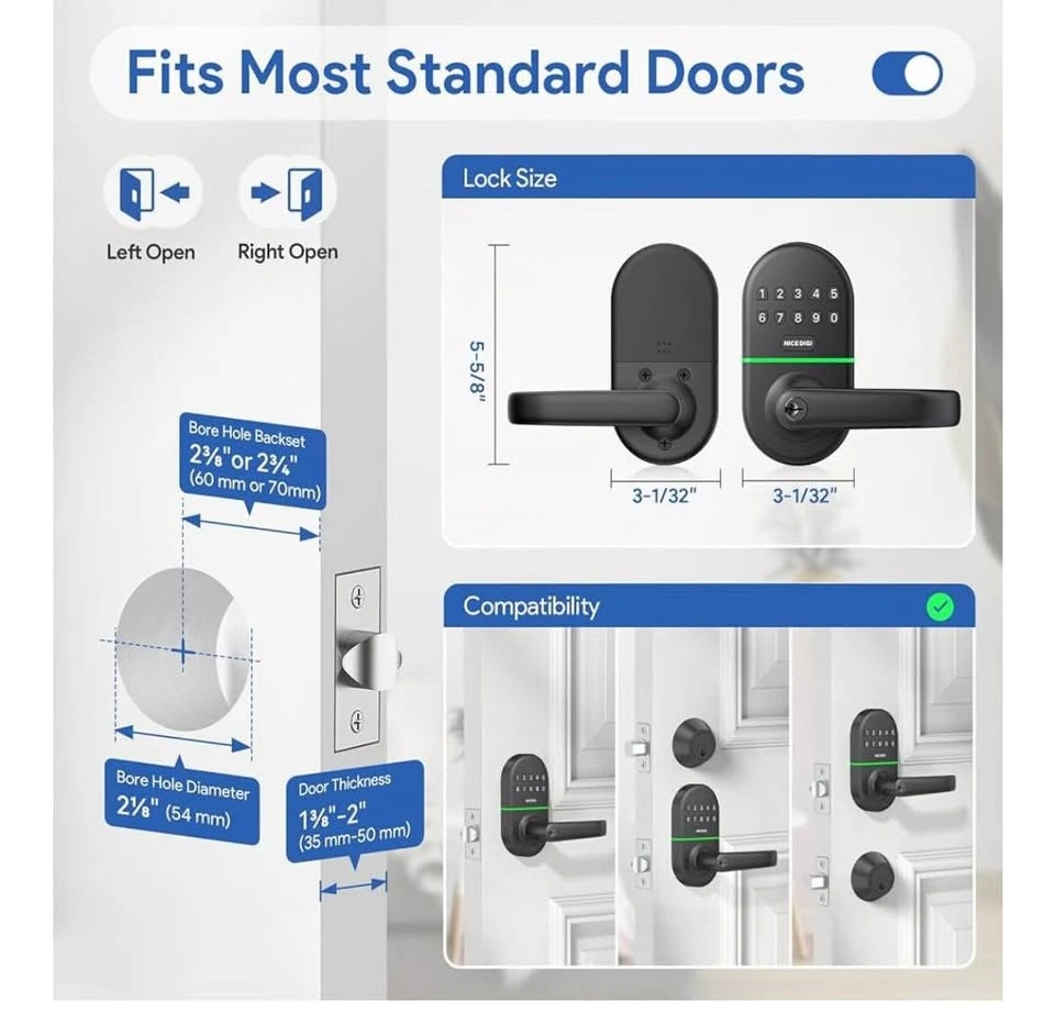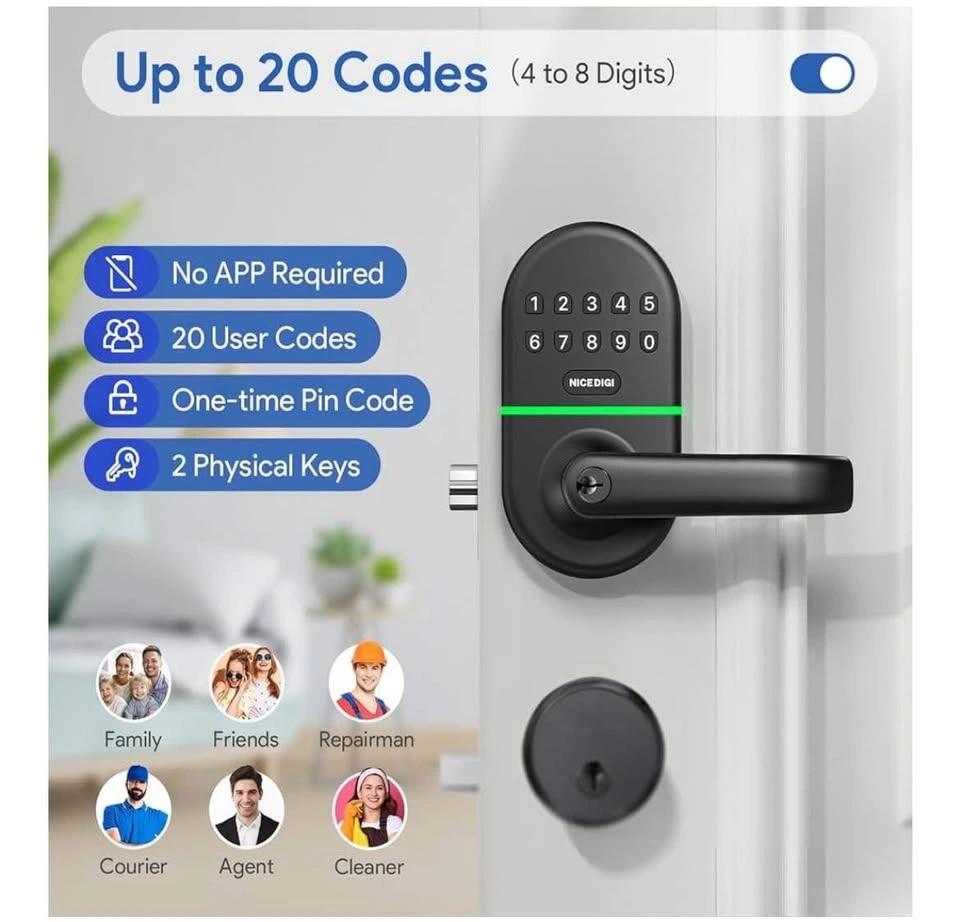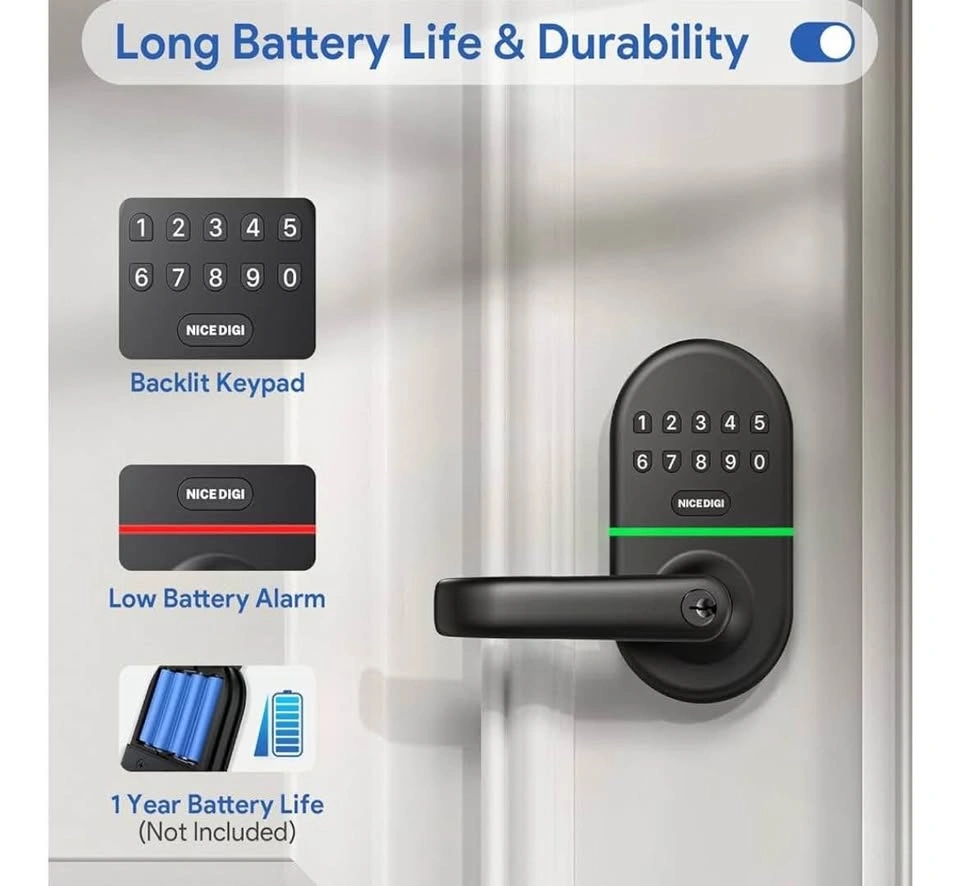 No box. Pick up is Markham 9th and 16th area. Cash only. Keyless Entry: Provide access to up to 20 unique password for your family or friends, and create temporary codes for guests to use. You can also use a key to unlock your digital lock. Fits most American home front wooden doors. Quickly replace the handle, knob or deadbolt of your existing door lock set with just a screwdriver. No extra drilling needed. Reversible handle fit both left and right handed doors. Upgraded Backlit Keyboard with Low Battery Alert, silent mode and vacation mode,water resistant. Requires 4*AA batteries (Not Included), with a battery life of up to one year. Set the auto-lock to lock in 5-99 seconds, and use the one-touch locking feature by pressing any keypad number for 2 seconds.