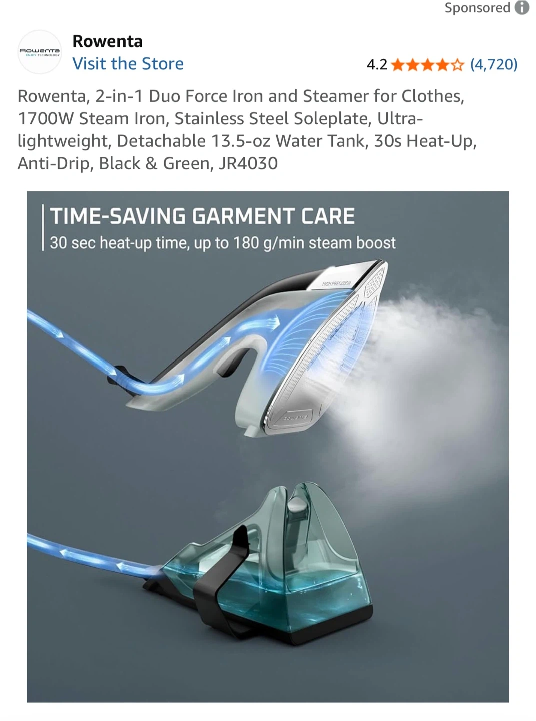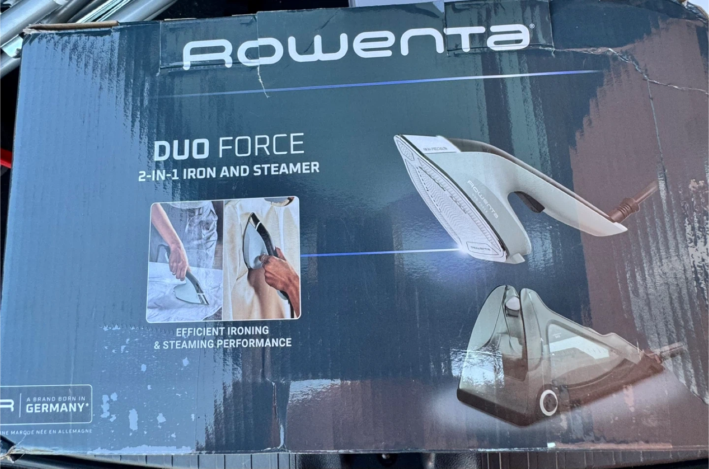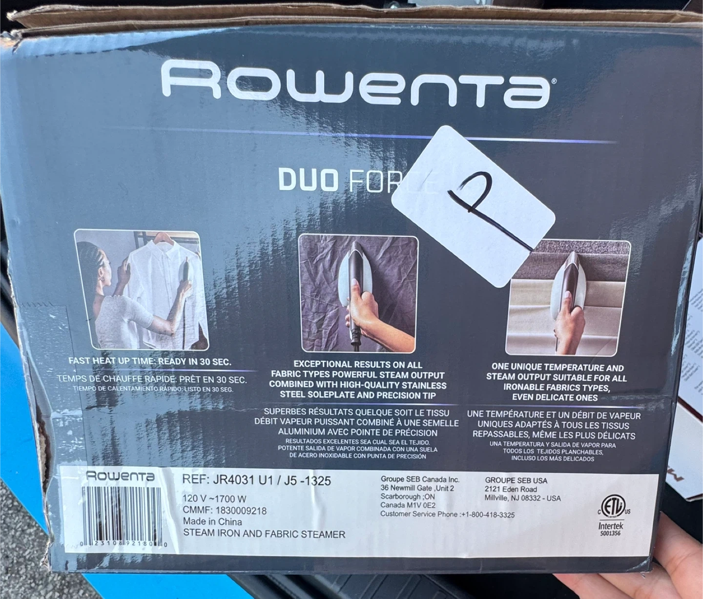 Brand new not used I'm selling a Rowenta Duo Force 2-in-1 Iron and Steamer! It's a 1700W steam iron with a stainless steel soleplate. It also has an ultra-lightweight, detachable 13.5-oz water tank and heats up in 30 seconds. The box is included! Amazon price $219 plus tax