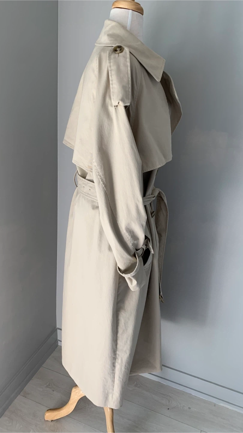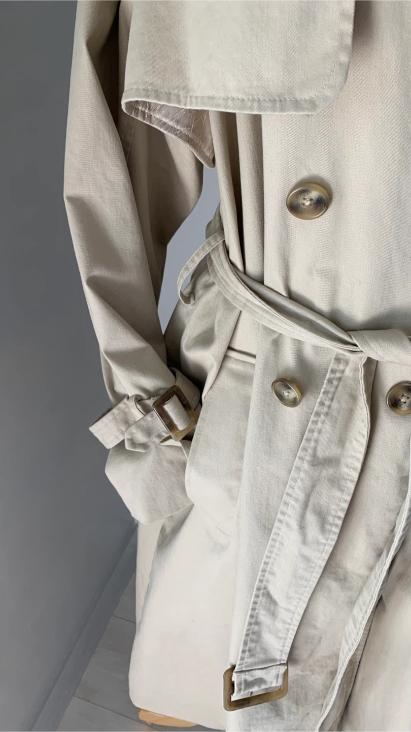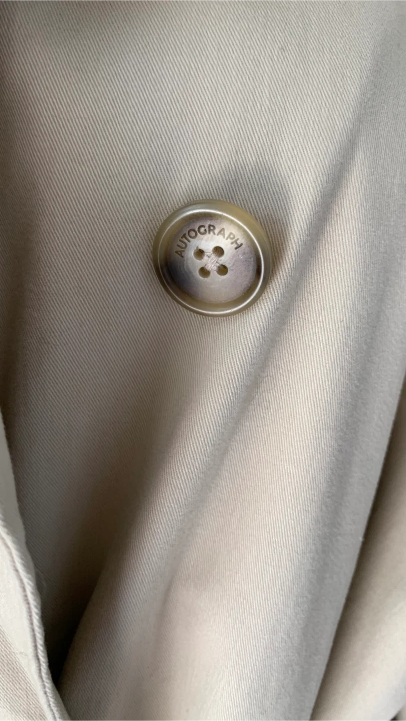 Beautiful beige trench coat from Autograph! This stylish coat features a belted waist and a timeless design. Focus on details. High quality! Perfect for adding a touch of elegance to any outfit! 97% Cotton 3% Elastane
