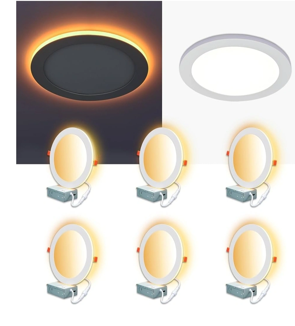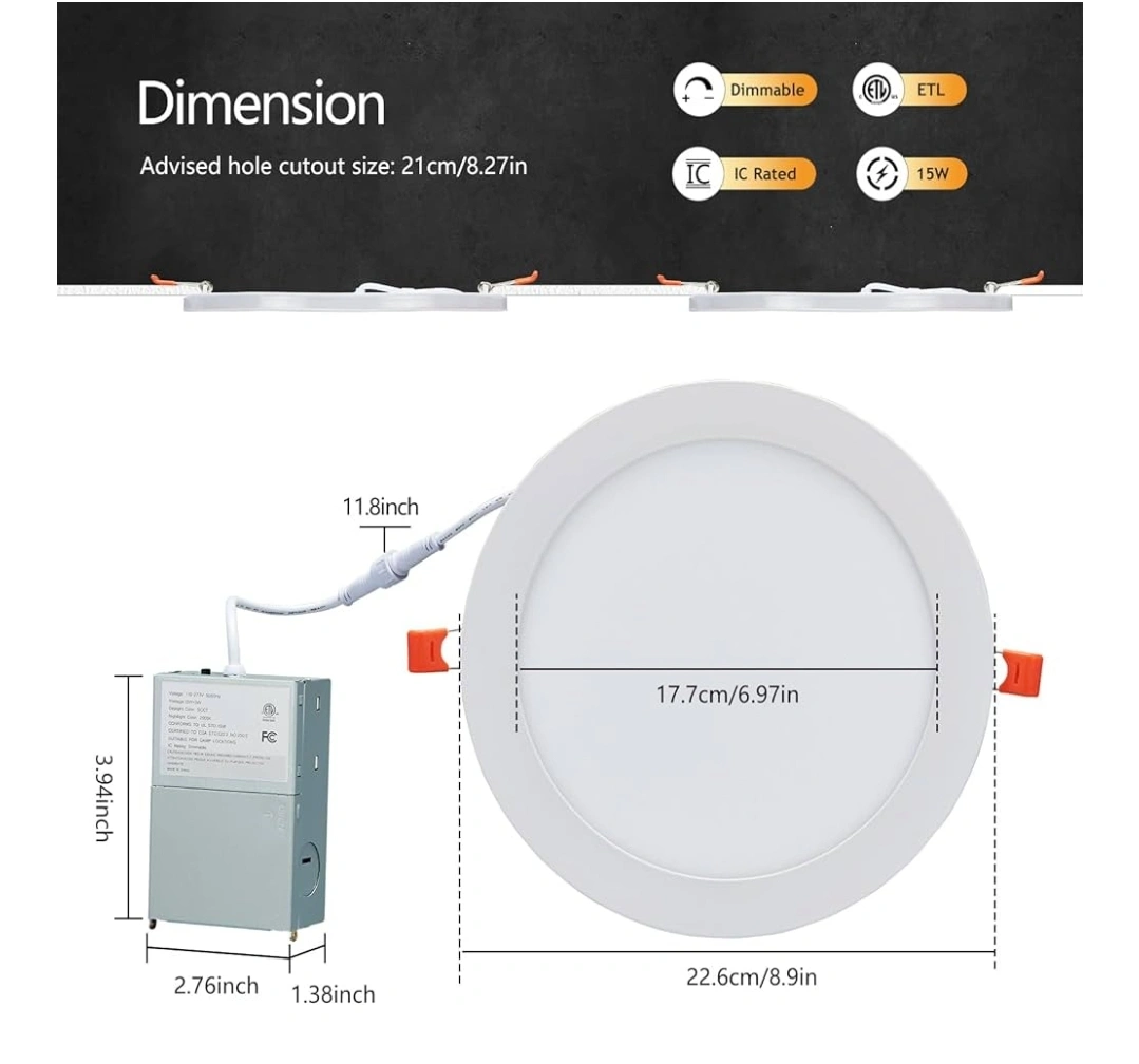 Selling a brand new pack of Cyseasun 8 inch LED recessed lights. This pack comes with 6 lights that are 5CCT selectable. Each light is 15W and dimmable. The advised hole cutout size is 21cm/8.27in. Box is included
