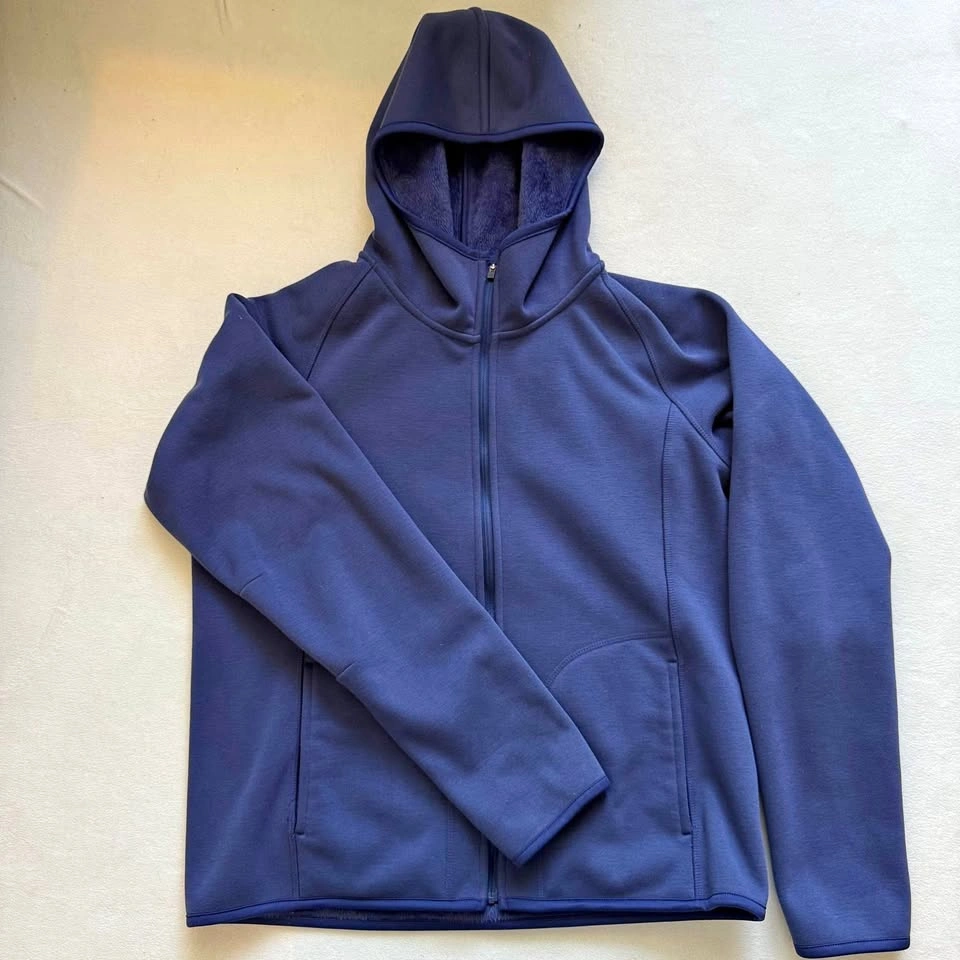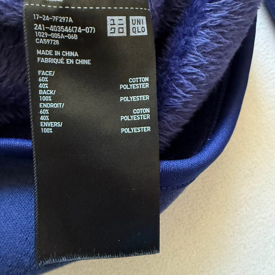 Excellent condition, M sized, Uniqlo full zip up hoodie. Essentially brand new, good quality. Nice blue/purple type colour. Inside material is a soft, short haired fur/fleece. Nice detailings on elbow. Measurements shown on photos. SF/PF home. Pickup Bathurst/Adelaide.