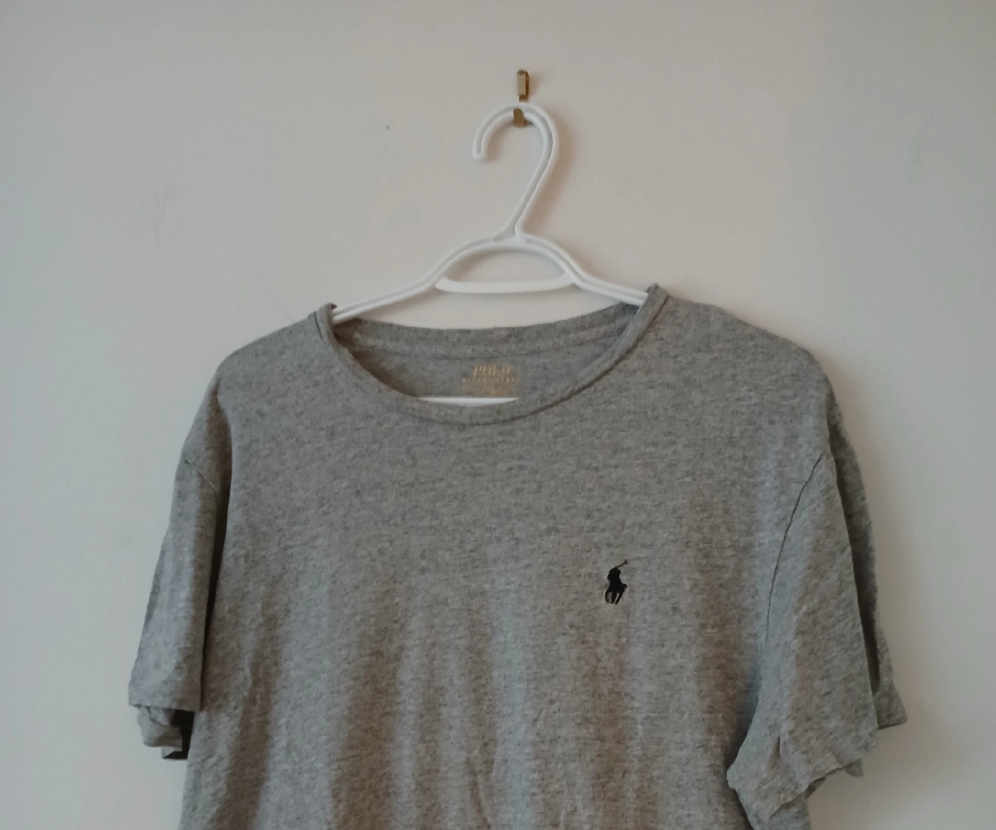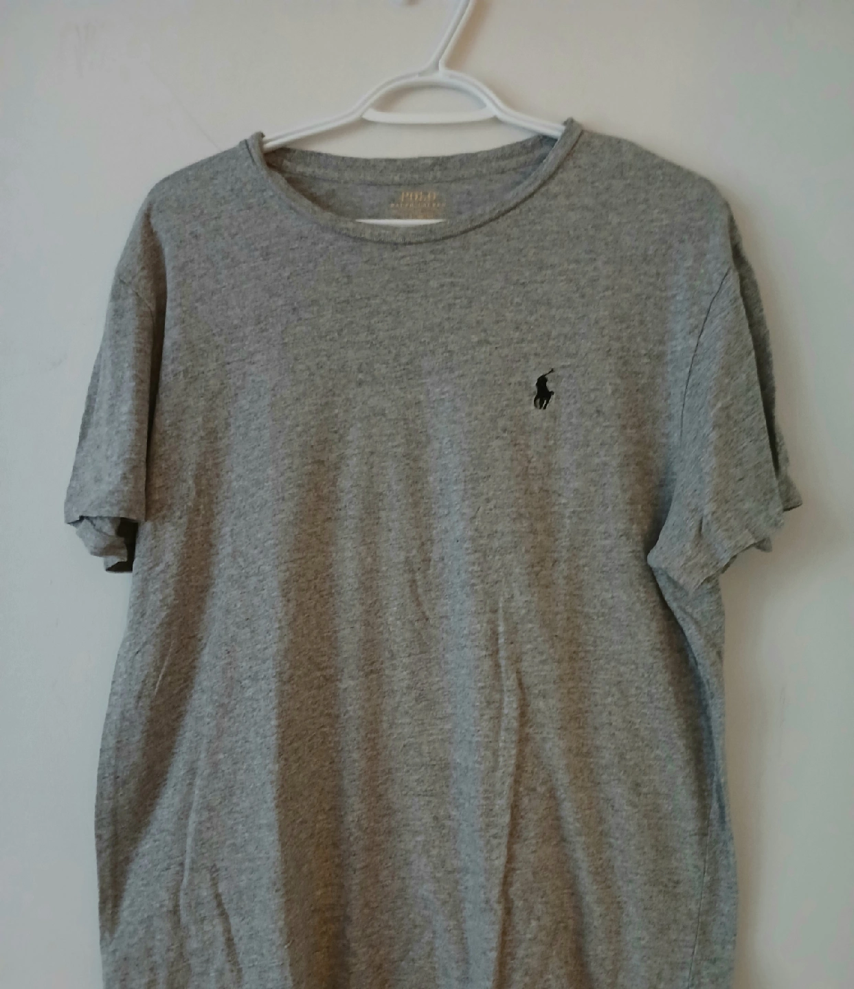 Selling a Polo Ralph Lauren t-shirt in size Large. It's a light grey colour with the classic Polo logo. The material is soft and comfortable, perfect for everyday wear!