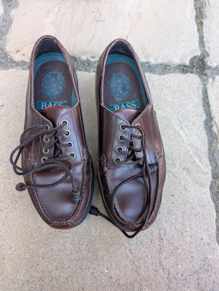 Selling a pair of Bass brown leather lace-up shoes. They're in good condition and ready for a new home! Perfect for casual wear or dressing up a bit size 9