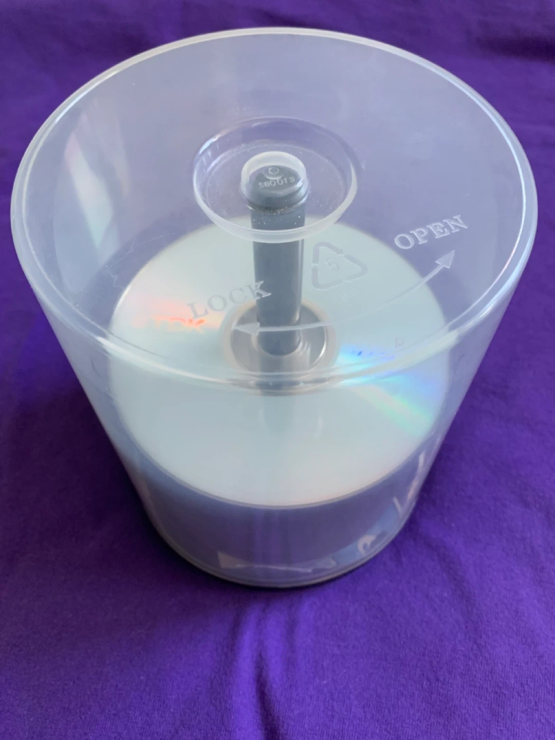 Spindle canister of TDK DVD-R discs. Assume there is no data on them but haven’t checked.