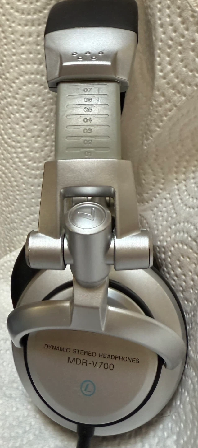 Selling a pair of Sony MDR-V700 dynamic stereo headphones. They're in good condition and ready for a new home! The earcups are black, and the headband is silver.