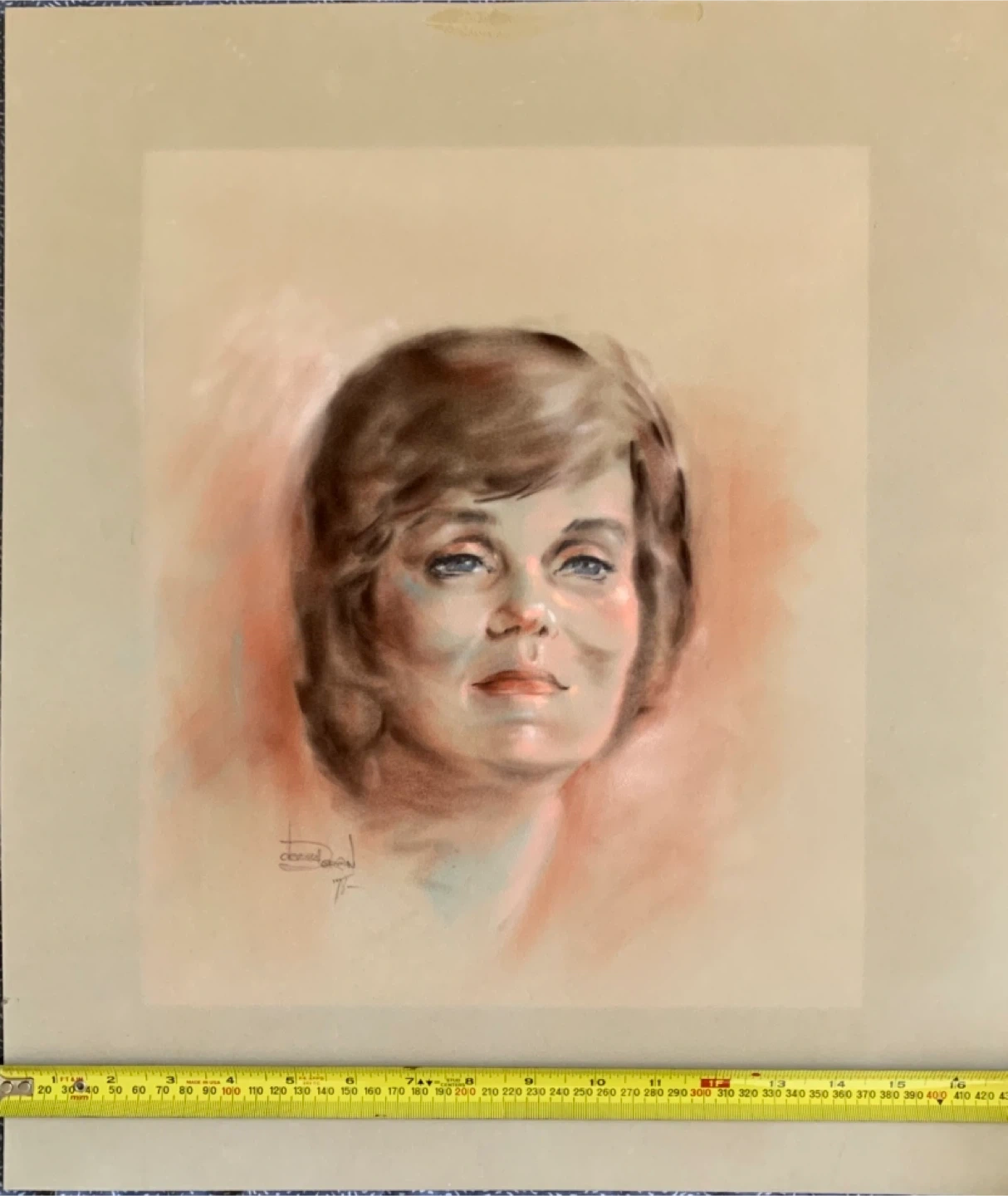 total measures 17 X 20. within original matting size 12 X 14. This is just the art on paper. No frame or matte. I donāt know who the lady is/was nor the artist but maybe you do? Perhaps it will be a good study piece or you find it intriguing. The medium seems to be a coloured charcoal or sorts? If that even exists.