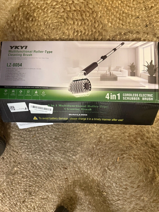 This is a new YKYI multifunctional roller-type cleaning brush, model LZ-8054, designed for various cleaning tasks with its 4-in-1 cordless electric scrubber brush functionality. It features a 3.7V 5200mAh battery, USB Type-C charging, and adjustable rotational speed. Key features include: * Battery: LZ-18650-C2P 3.7V 5200mAh * Max Power: 68W * Charging Time: 3-4 hours * Charging Method: USB Type-C * Input: DC5.0V (1000-2000)mA * Battery Usage Time: >50 minutes * Maximum Torque: >50kgf * Rotational Speed: 300/400 rpm New - Never Used MSRP $350 If the ad is up, it's available!
