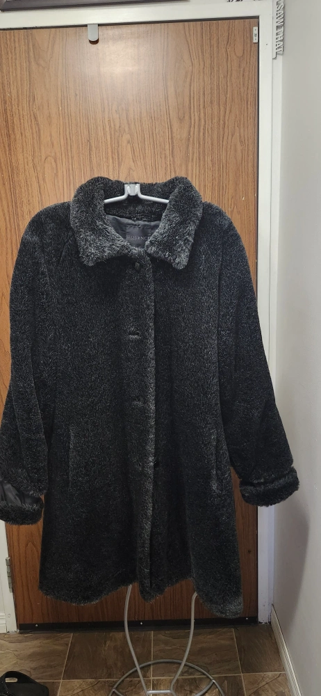 Cozy Sequence faux fur coat in excellent condition! This coat is a size XL/TG and is made of 100% acrylic shell and 100% polyester lining. Perfect for staying warm and stylish during the colder months