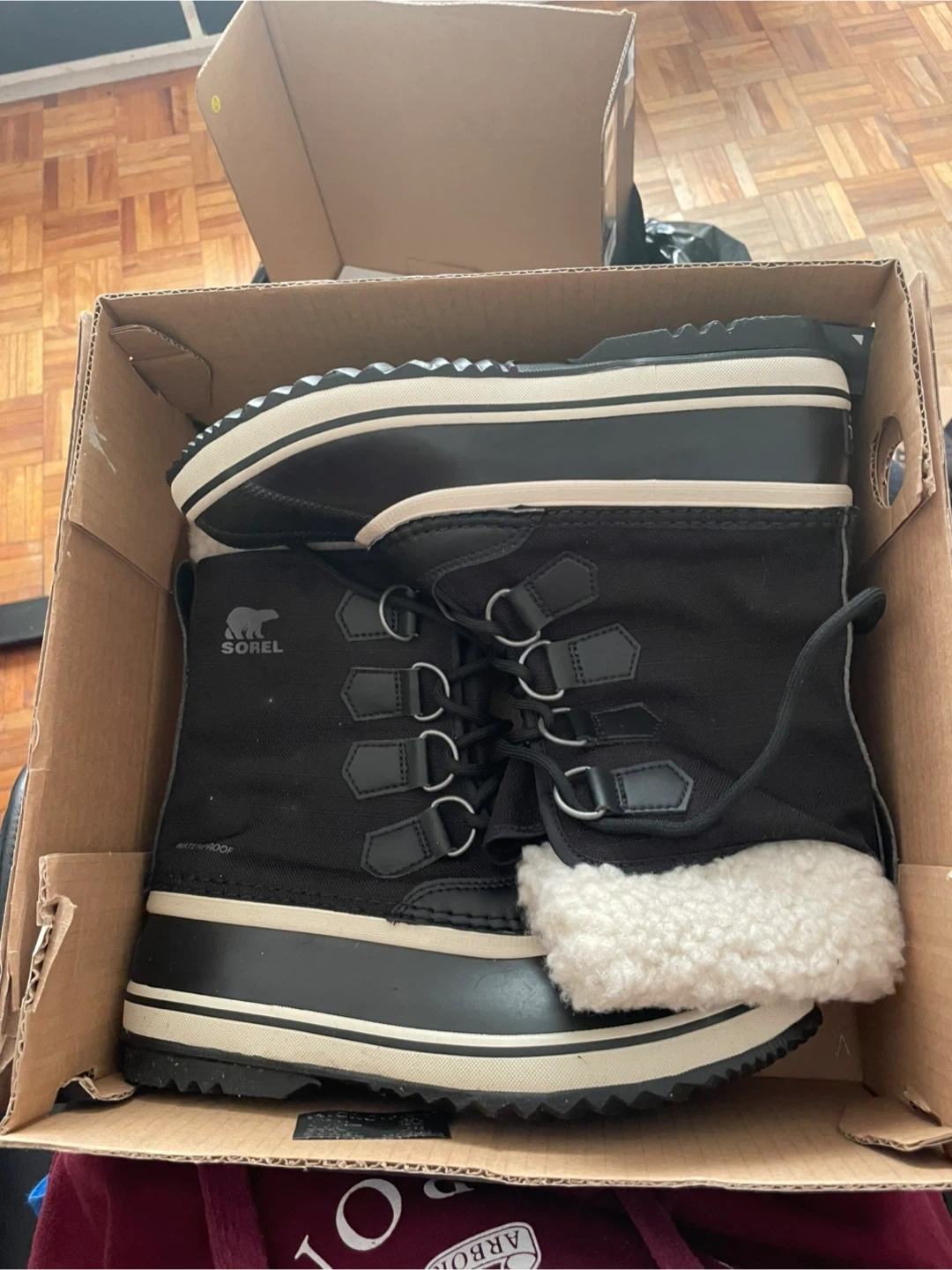 Selling a pair of Sorel winter boots. They come with the original box. These boots are perfect for keeping your feet warm and dry during the cold Canadian winters. The boots are in great condition and ready for a new home. Pick up at dufferin station or lansdowne station.