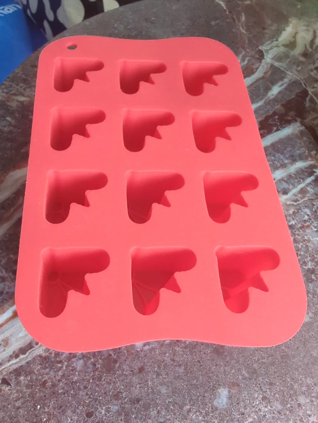 I'm selling a red silicone mold with heart shapes. It's perfect for baking or making candies. It's in great condition and ready for a new home. pick up only