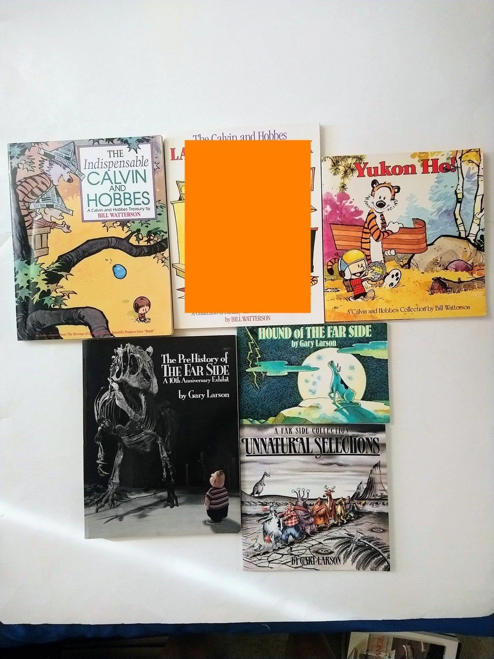 Location: Yonge and College /downtown Toronto $5 each. Cash only; prices are firm. Bill Watterson: - The Indispensable Calvin and Hobbes - Yukon Ho! Gary Larson: - The PreHistory of The Far Side - Hound of The Far Side - Unnatural Selections Feel free to check out my other book posts as well!