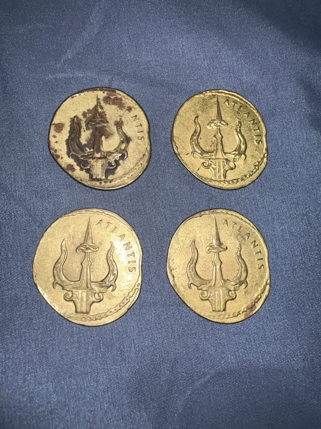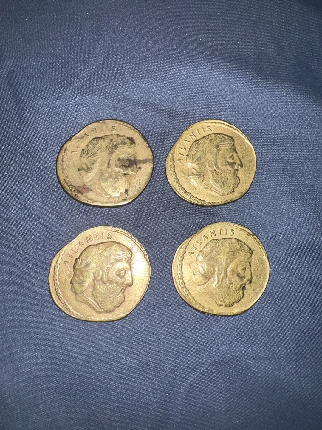 Selling a set of four Atlantis coins. They appear to be in used condition, as shown in the pictures. Perfect for collectors or anyone interested in ancient mythology! $60 for all!