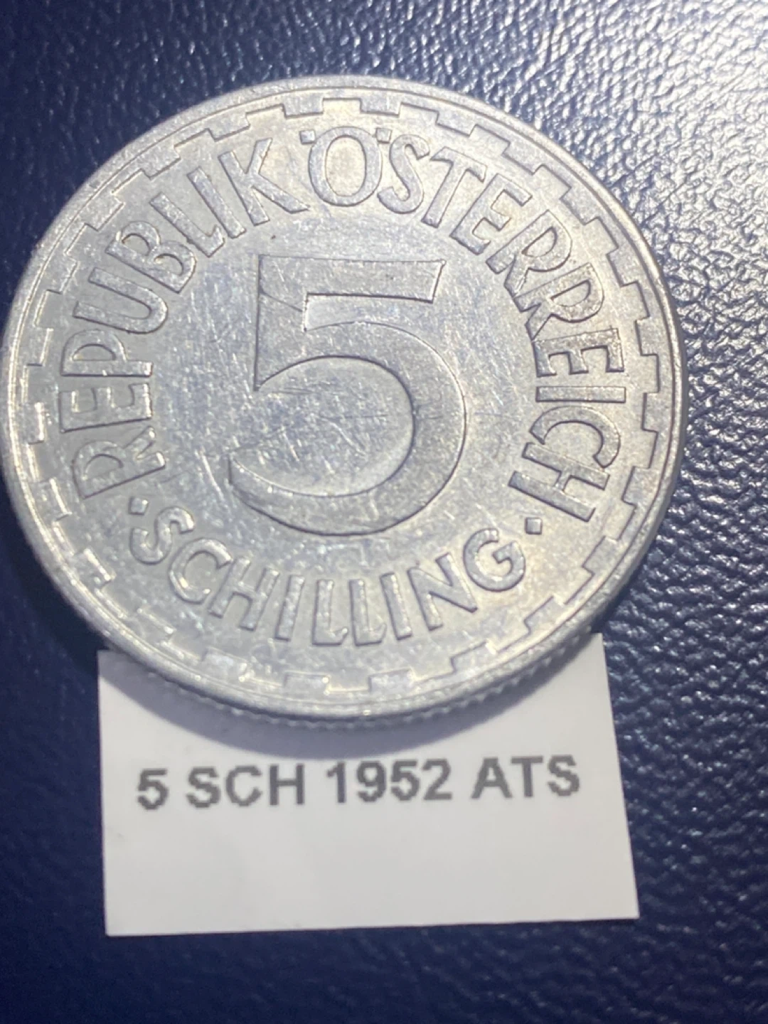 Selling an Austrian 5 Schilling coin from 1952. It's in good condition and features the Austrian coat of arms on one side and the denomination on the other. A nice piece for collectors!