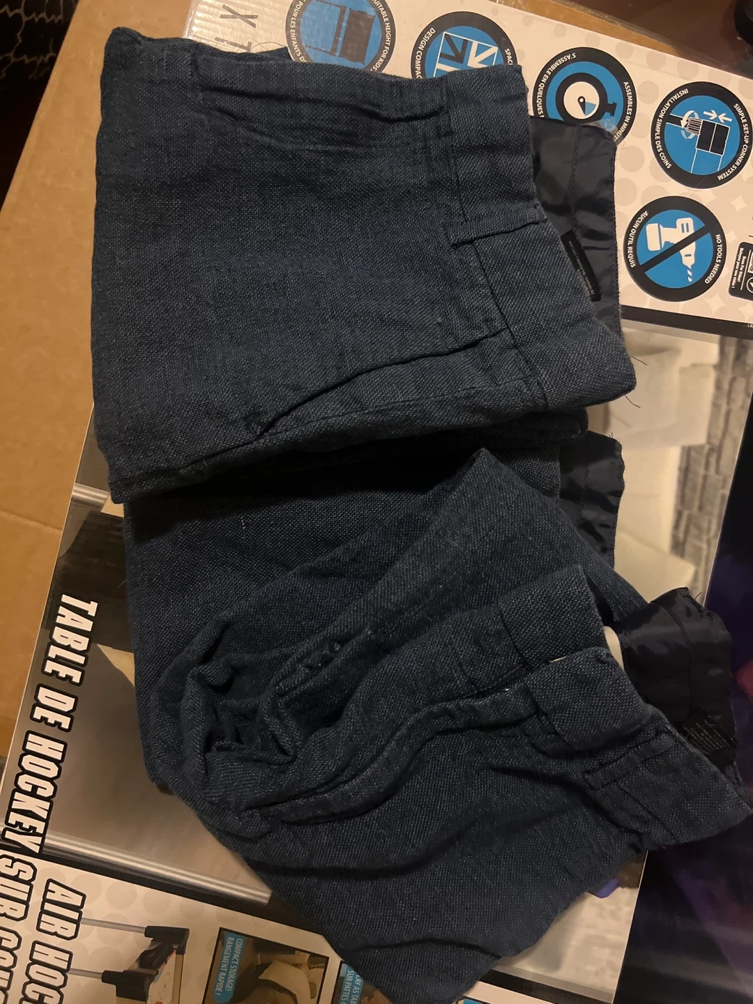I'm selling a pair of dark blue pants. They great condition and could be a great addition to your wardrobe! I have many sizes from my son has grown out of them years old five years There from h& m & old navy Feel free to ask any questions you might have
