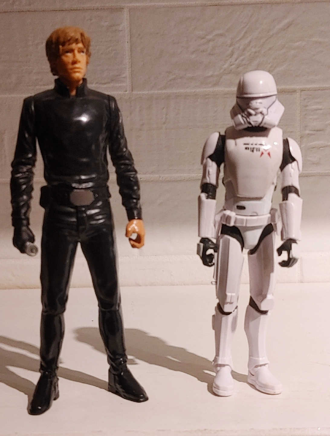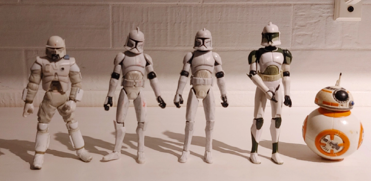 Lot of Star Wars action figures. 16 toys in total. 12 inch Darth Vader, 12 inch black stormtrooper, 11 inch Poe Dameron, 11 inch Rey, 3 mini heroes figures, 6 inch Luke Skywalker, 5 inch Clone Trooper, 6 x 4 inch Millenium Falcon, 3 inch Anakin, 4 4 inch Clones and 1 2.5 inch BB8 figure. All toys thoroughly cleaned and disinfected. Slight wear on a few figures but otherwise in good condition. Smoke free home pick up Mt.Brydges cash only. Not selling individually, lot only.