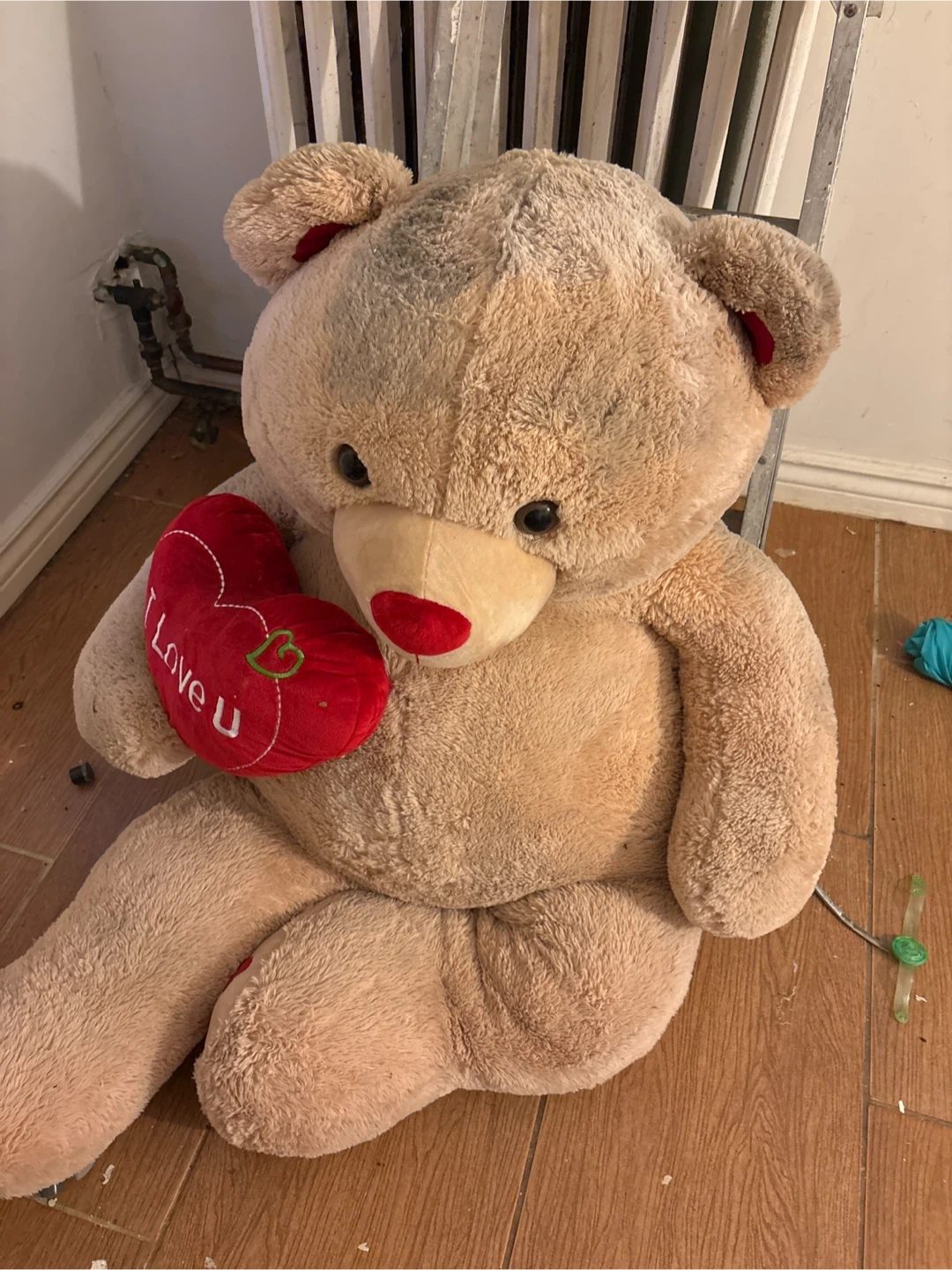 Selling a large, cuddly teddy bear! It's holding a cute red heart that says "Love U". Perfect for a gift or just to add some extra coziness to your space I don't have room for this and it filled with dust.
