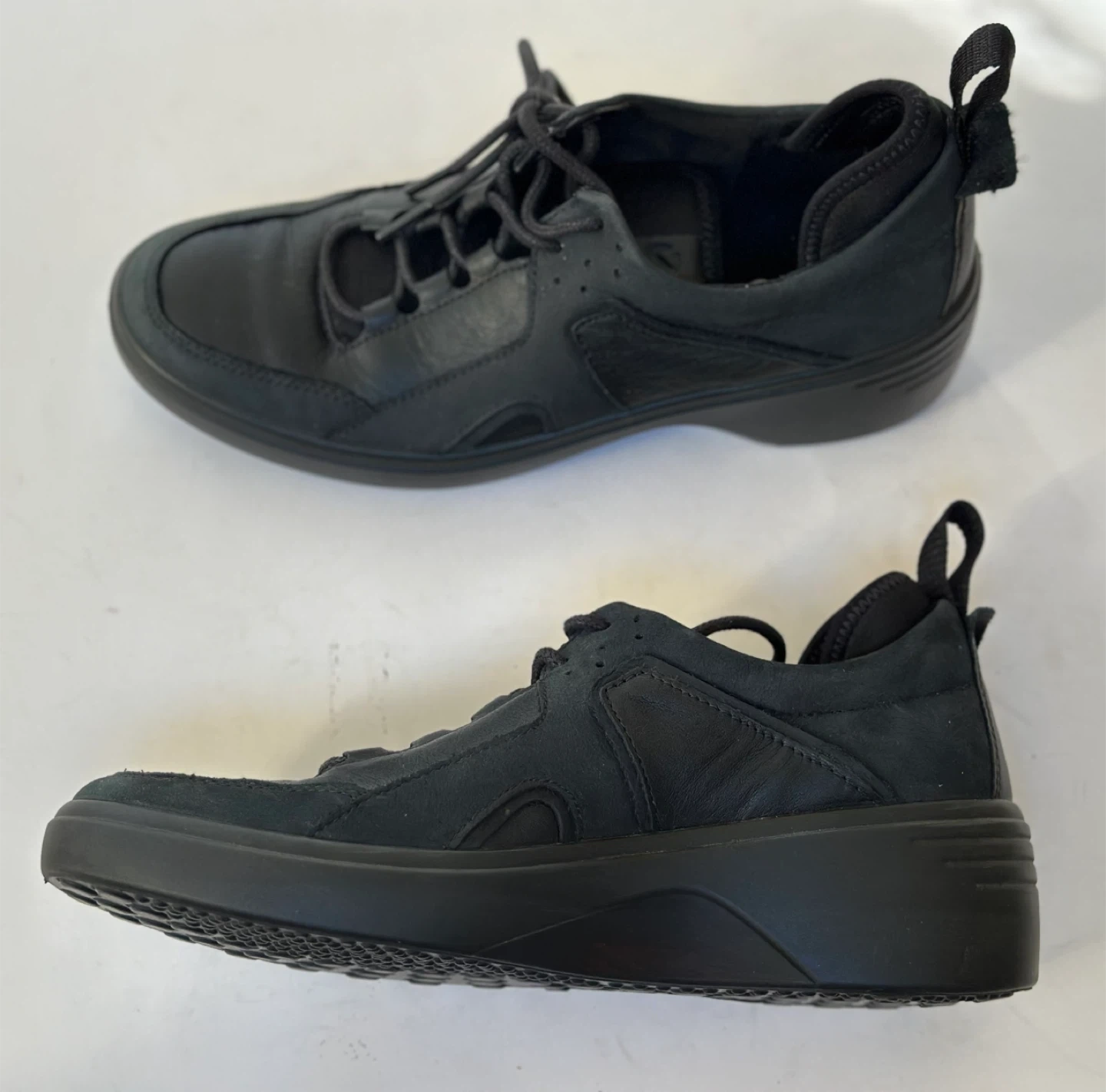 In excellent preloved condition. Selling a pair of Ecco sneakers in blue & black leather. These are extra width for a comfortable fit. Size: EUR 39/ US 8-8.5 These shoes have been meticulously cleaned and sanitized. From a smoke free, pet free home. Pick up in Alta Vista.