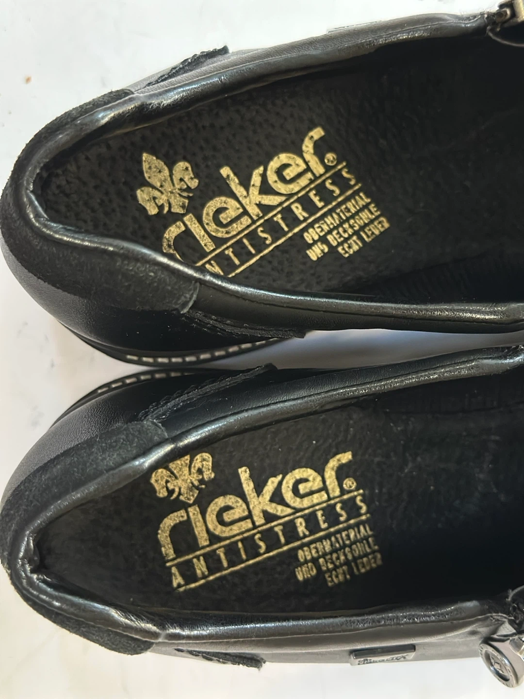 Super comfortable Ladies Rieker Antistress shoes in black leather. In very good preloved condition. These shoes have been meticulously cleaned and sanitized. From a smoke free, pet free home. Pick up in Alta Vista.