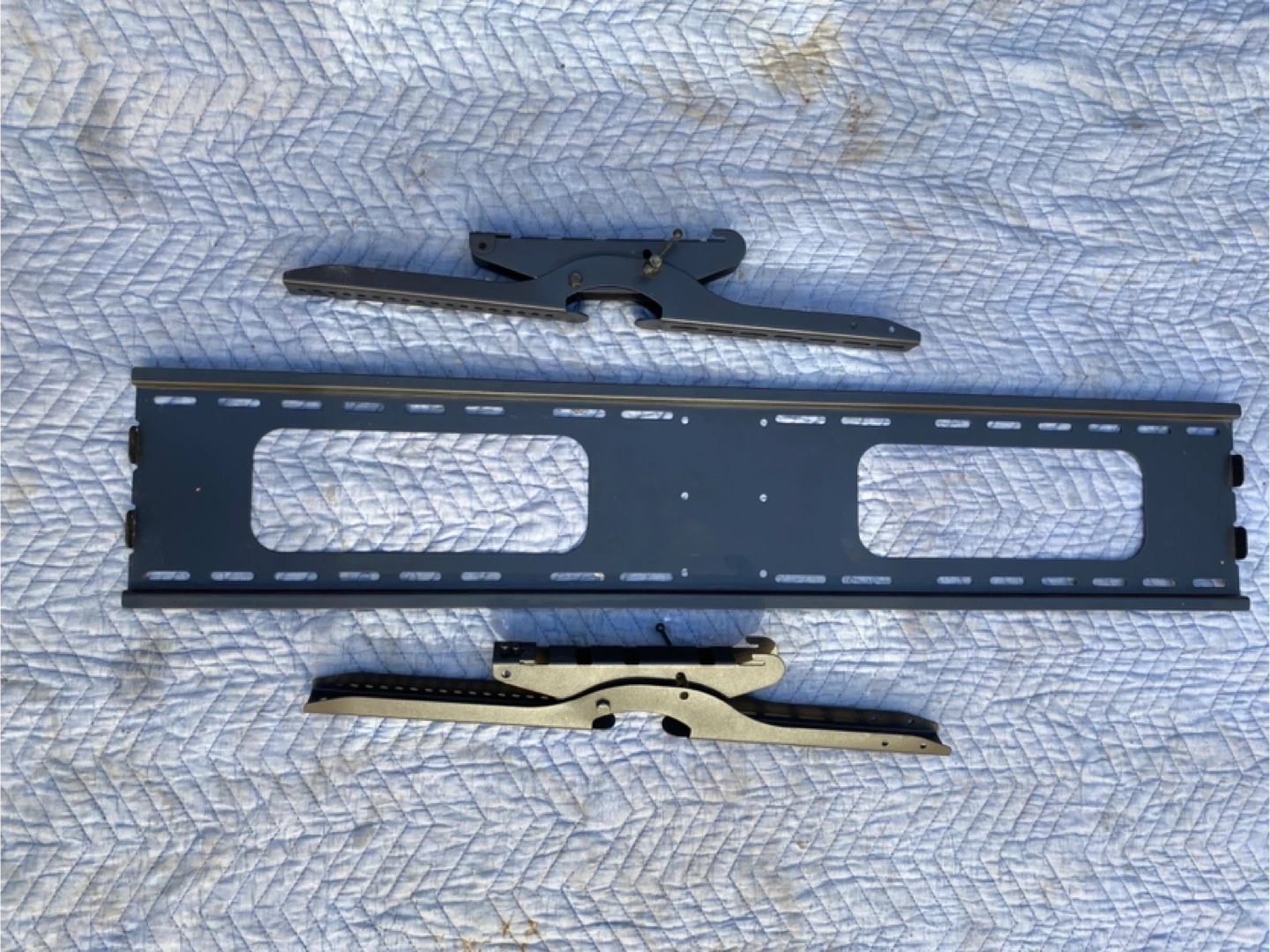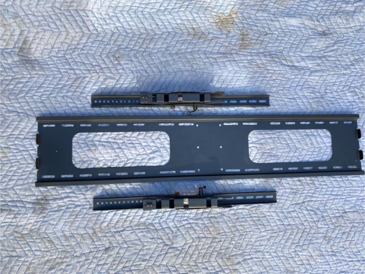 Selling a TV wall mount. It's in great condition and ready to use. Perfect for mounting your TV securely and saving space! Up to 100” TV. No bolts or screws.