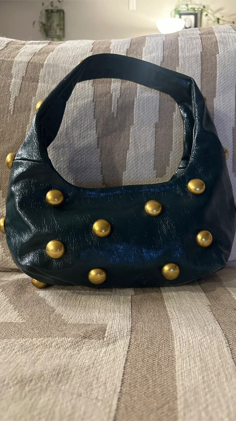 It features gold studs and a unique design. Perfect for adding a pop of colour to your outfit! Send your offer! Pick up at 88 Erskine ave.