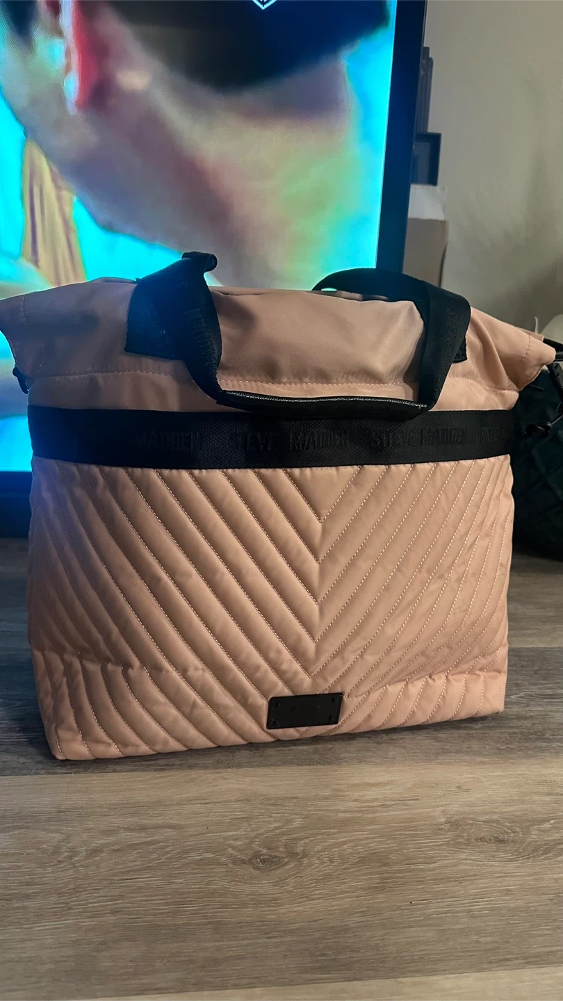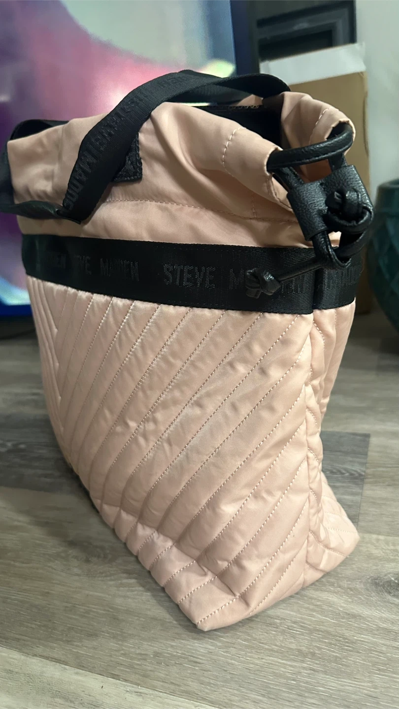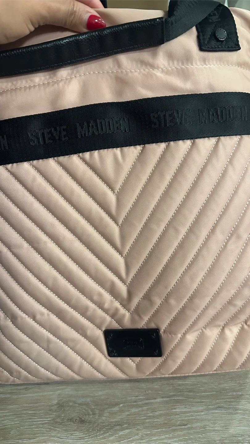 Selling a Steve Madden tote bag in a lovely blush colour! It features a stylish quilted design and black straps. It's perfect for everyday use or as a travel bag Send your offer! Pick up at 88 Erskine ave.