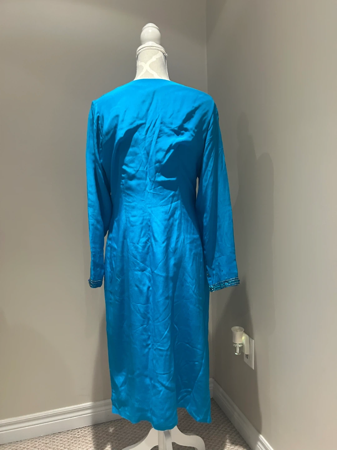 Here's a beautiful teal blue salwar kameez. It's in great condition and ready for a new home. The colour is a vibrant teal blue. It would be a great addition to any wardrobe