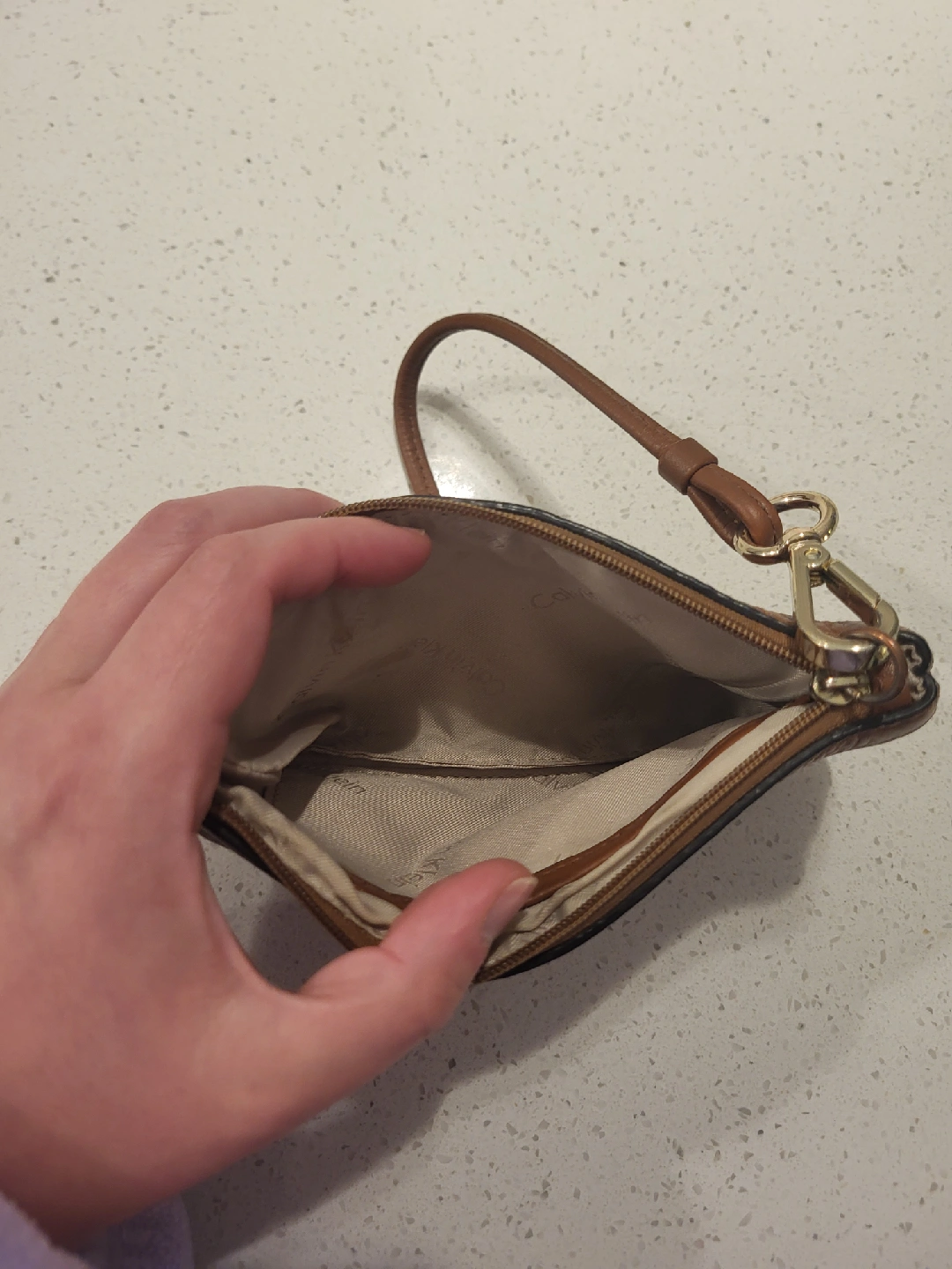 Selling a Calvin Klein wristlet in a lovely brown colour. It's in great condition and perfect for carrying your essentials when you don't want to lug around a big purse. The wrist strap is super handy!