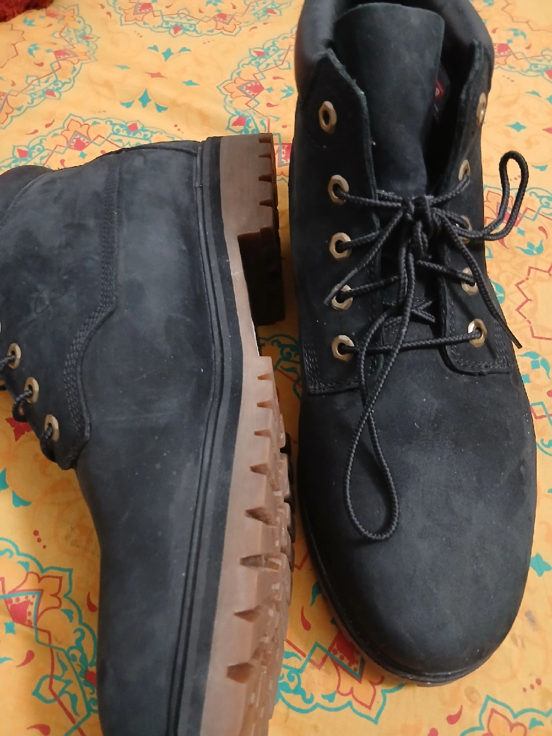 Classic Timberland ankle boots in black! These are in great shape and ready for a new home. Perfect for everyday wear or outdoor adventures. The rugged sole provides excellent traction, and the timeless design goes with everything