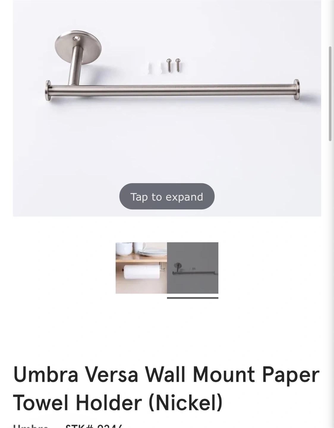 Selling an Umbra Versa wall mount paper towel holder in nickel! It's perfect for keeping your kitchen tidy and your paper towels within easy reach. A stylish and practical addition to any home