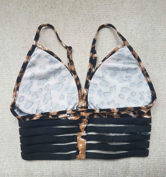 Hasn't been worn. Size small and stretchy. Adjustable straps. Located in Aurora.